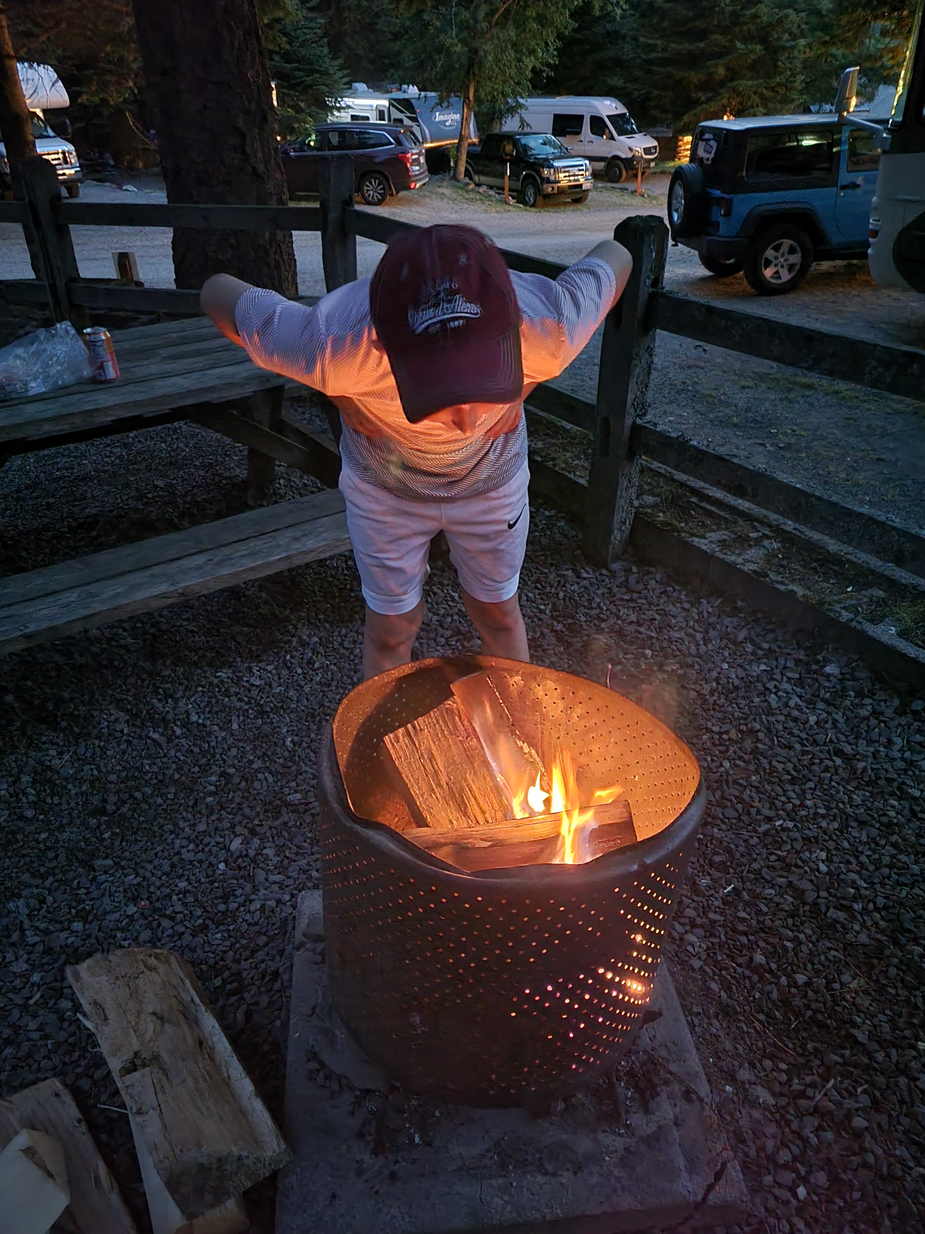 When we got to our campsite that evening, we were excited to spend time around the fire with my cousin and his wife, who drove down from Washington to be at our campsite and hang out with us. We had only gotten a night to see them on the Fourth of July so this was an extra treat.