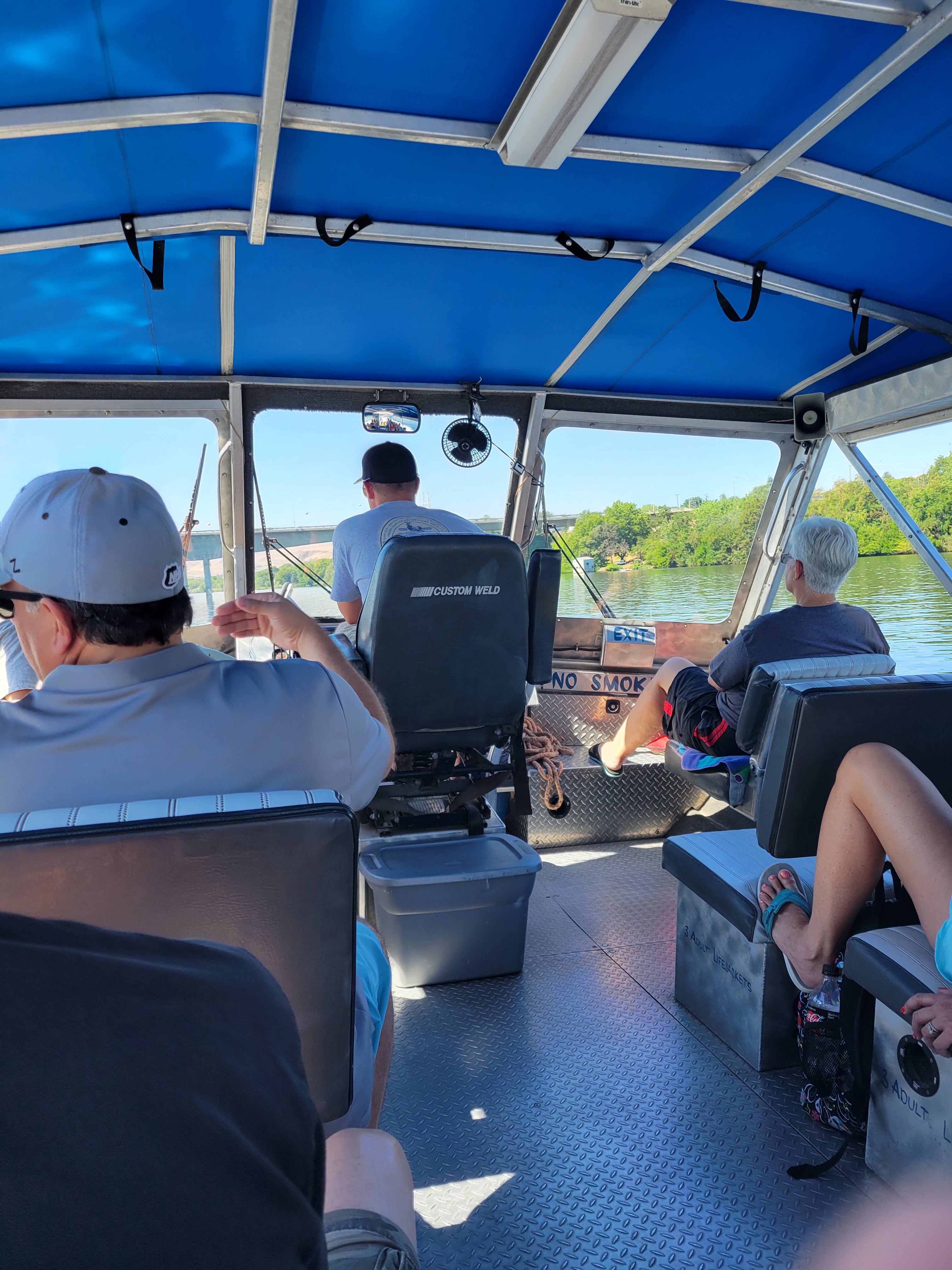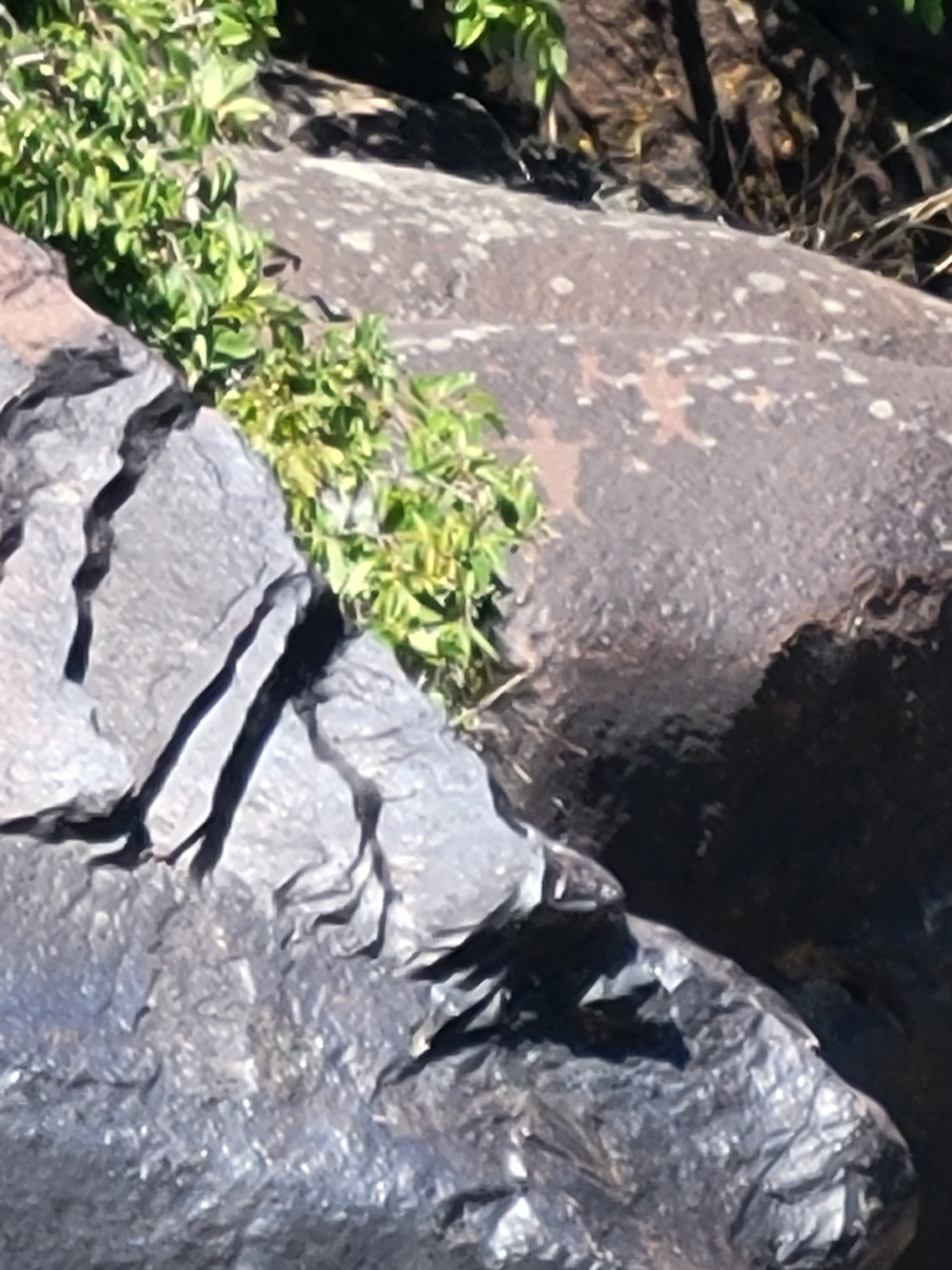 On the way back, we were able to see more wildlife at the water’s edge. At one point, we pulled off to the side of the river and went swimming. Matthew and Izzy were the first to ask if they could dive off the back of the boat, since the drop-off to deep water was pretty steep and it was relatively safe. After we loaded back onto the boat, we also encountered some multi-day raft tourists and kayakers. It was interesting to see how all of the boats, including ours, were careful to avoid creating wakes anywhere near non-motor boats and swimmers. Only once did we see a boat exhibiting poor water safety where smaller craft were concerned. Otherwise, despite it being a fairly crowded day, everyone co-existed well on the river. Finally, our guide pulled us up alongside some rocks with petroglyphs dating back thousands of years, situated near a ranch run by the Nature Conservancy. By this point, both kids were wiped and one was napping on my lap. (And if you have a teen you’ll know how absolutely precious this moment was to me.)