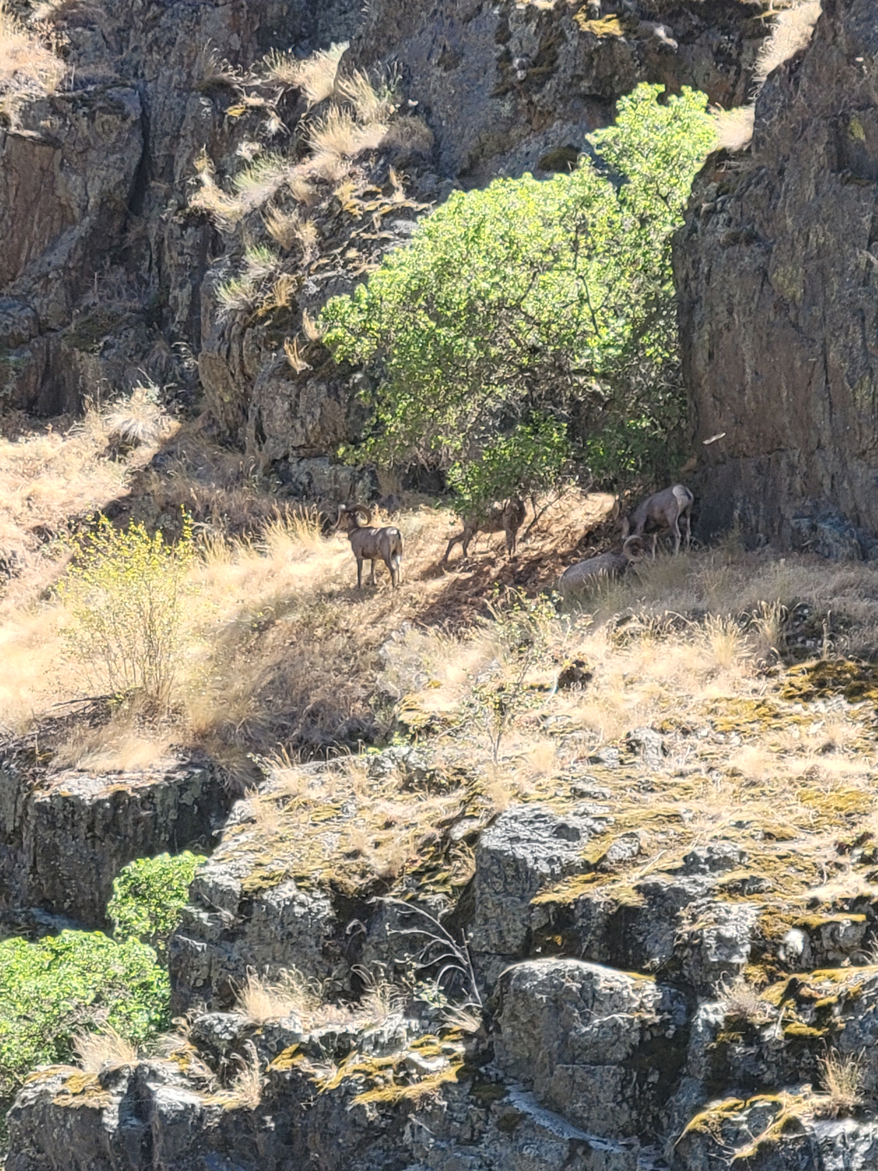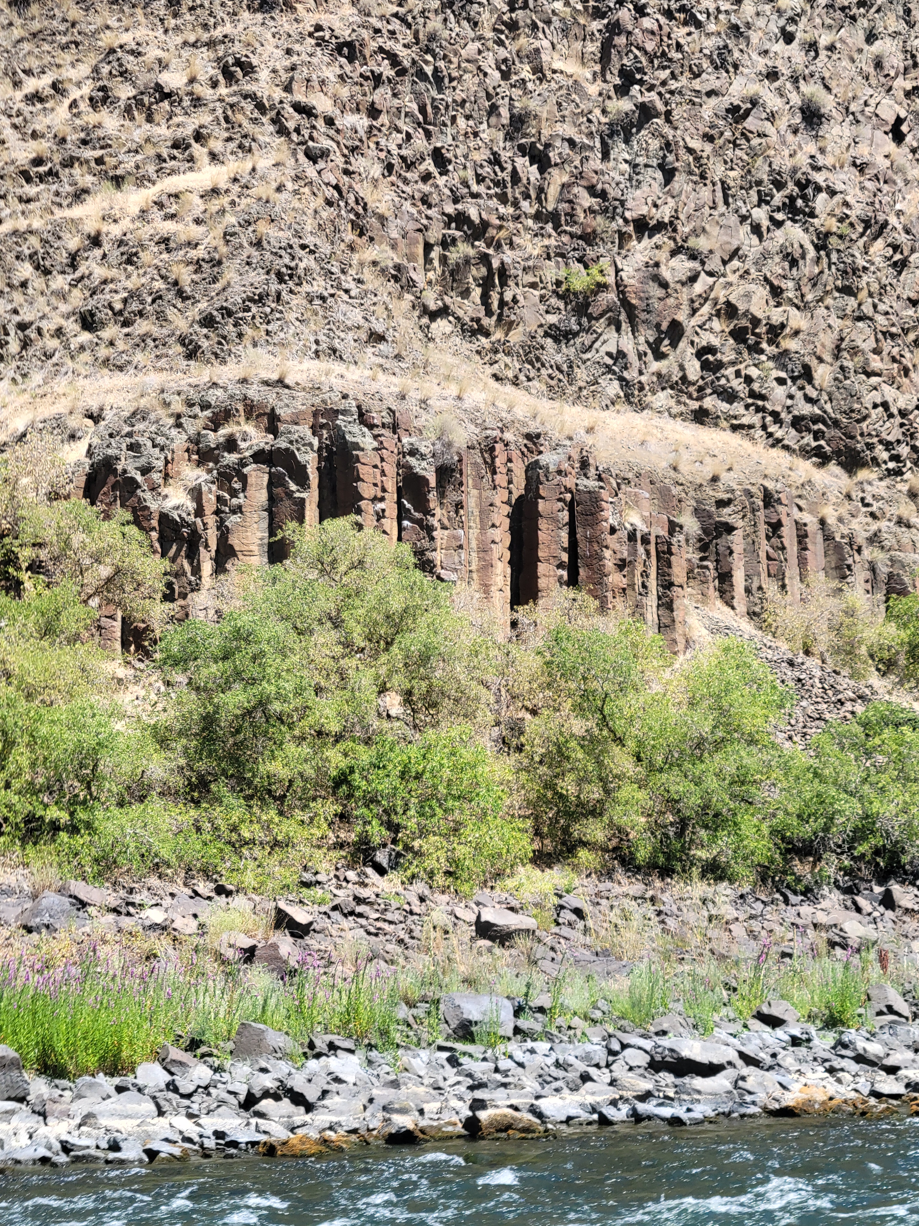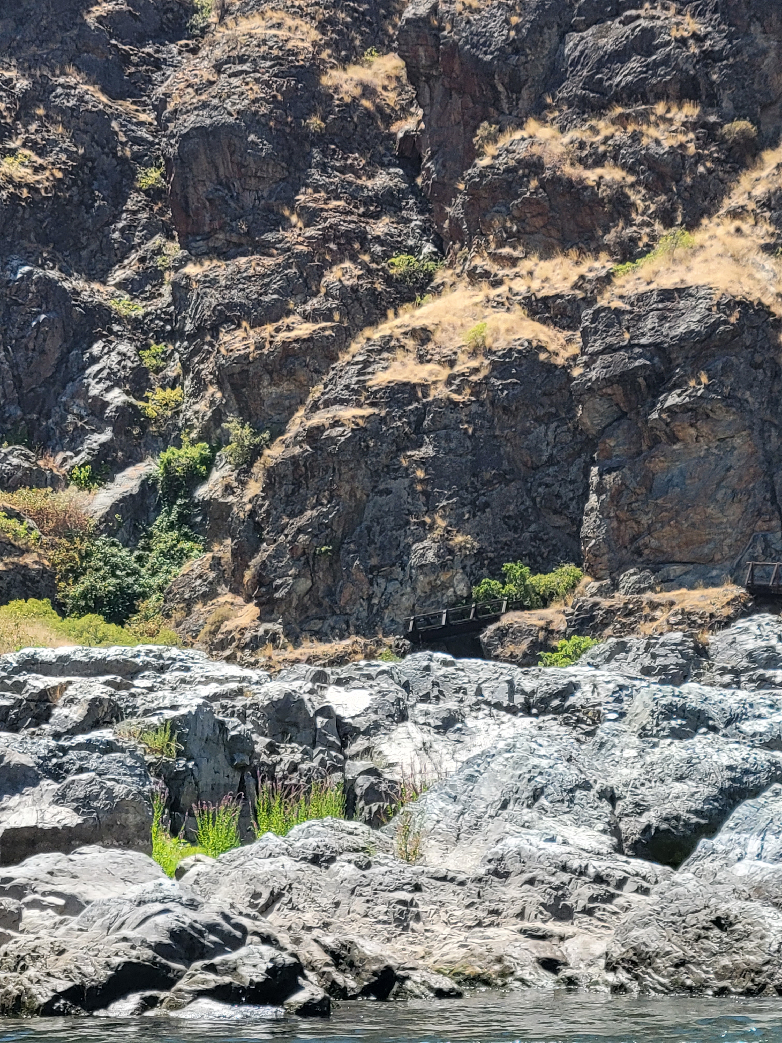Around lunchtime we hit the US National Forest’s Cache Creek Ranch in Oregon, just past the border with Washington. Idaho was still on the opposite shore. Any boats travelling past this point are required to pull over to the dock and get their Hells Canyon permits checked. We stopped long enough to eat a delicious lunch that the tour company provided and had a lovely conversation with some fellow travelers from Northern California. Then we got into the boats and continued up-river until we reached Dug Bar, at which point we turned around. This area had a pretty heart-breaking indigenous people’s history: https://www.nps.gov/nepe/learn/historyculture/dug-bar-history.htm.