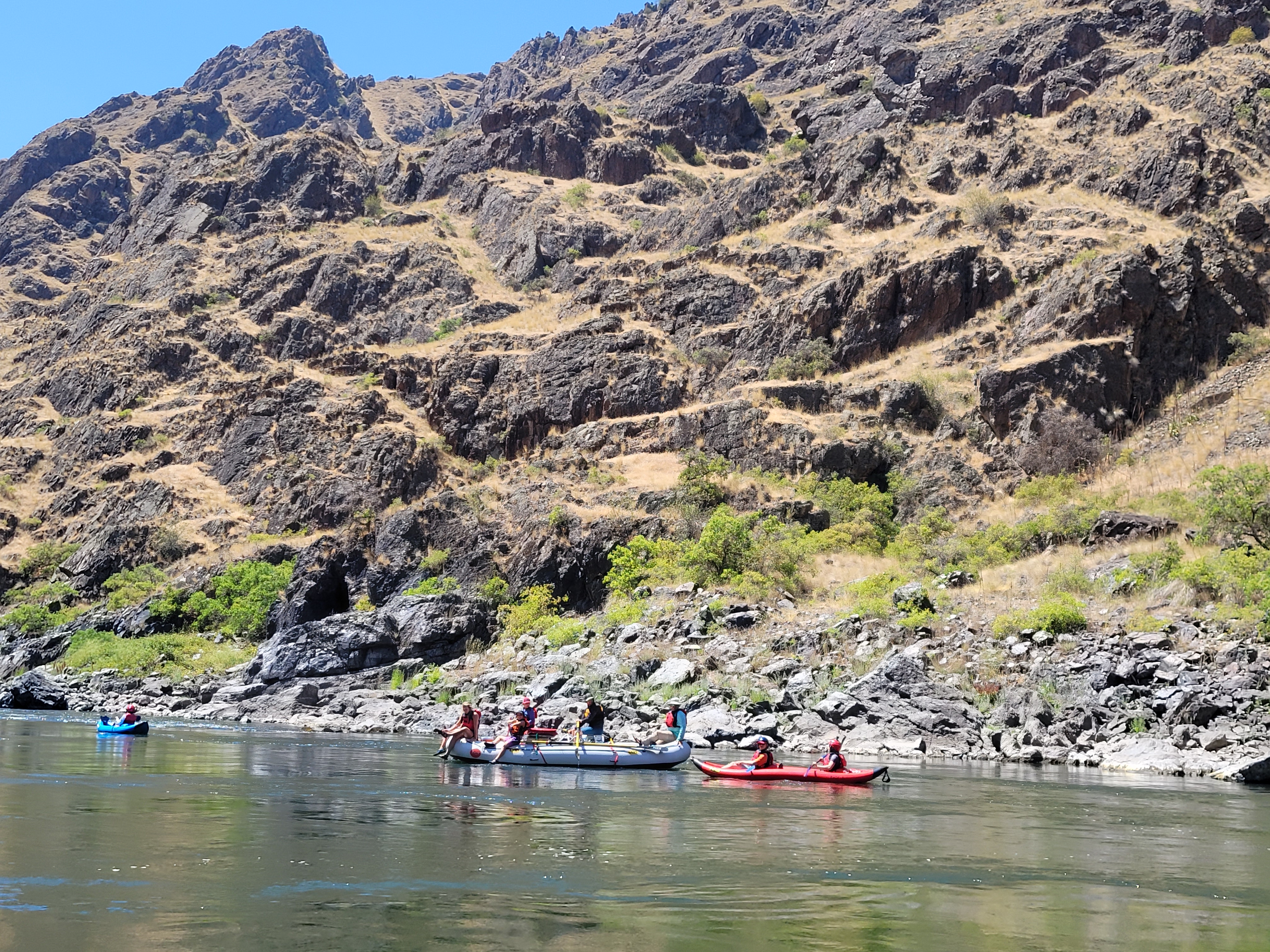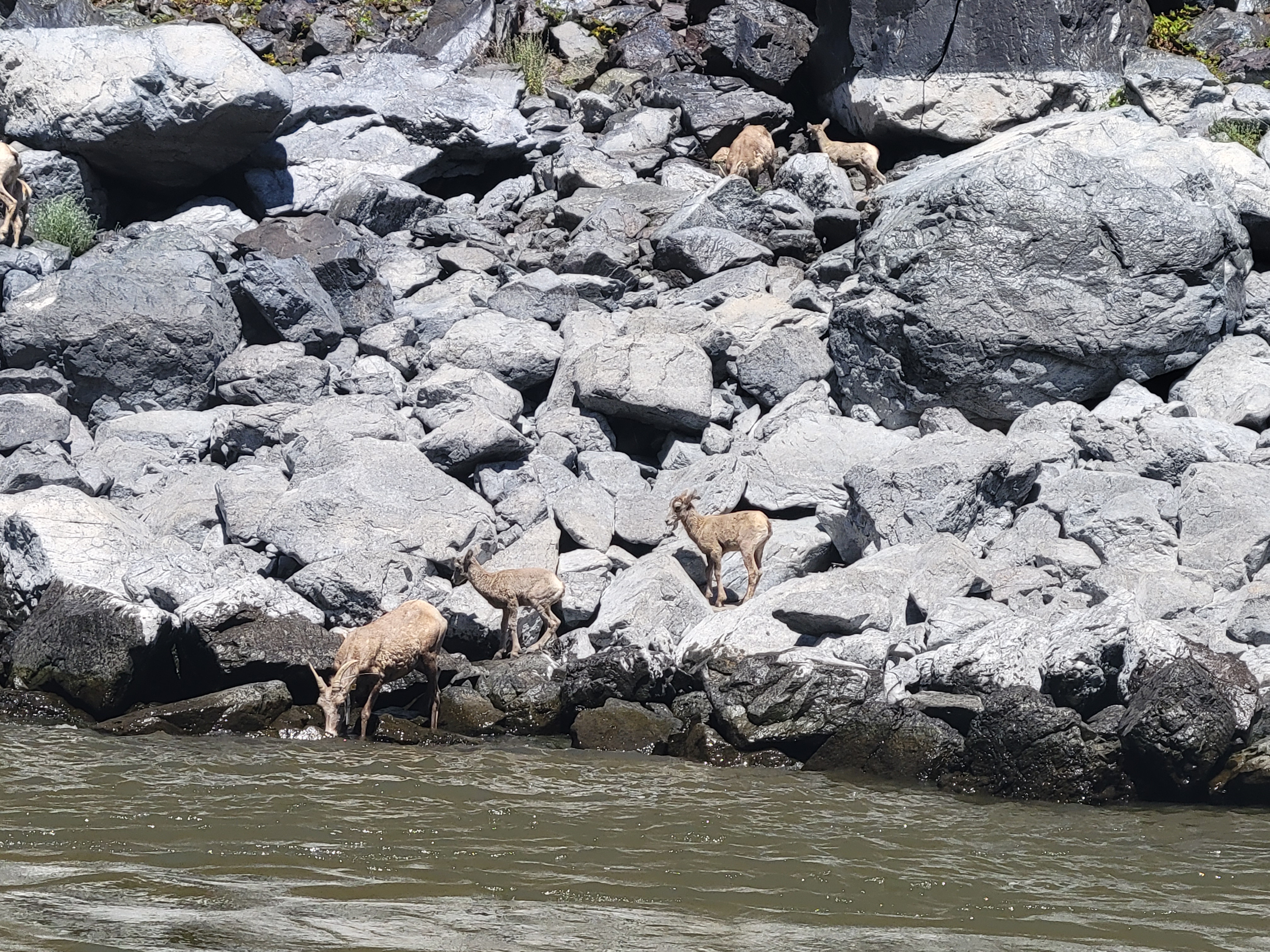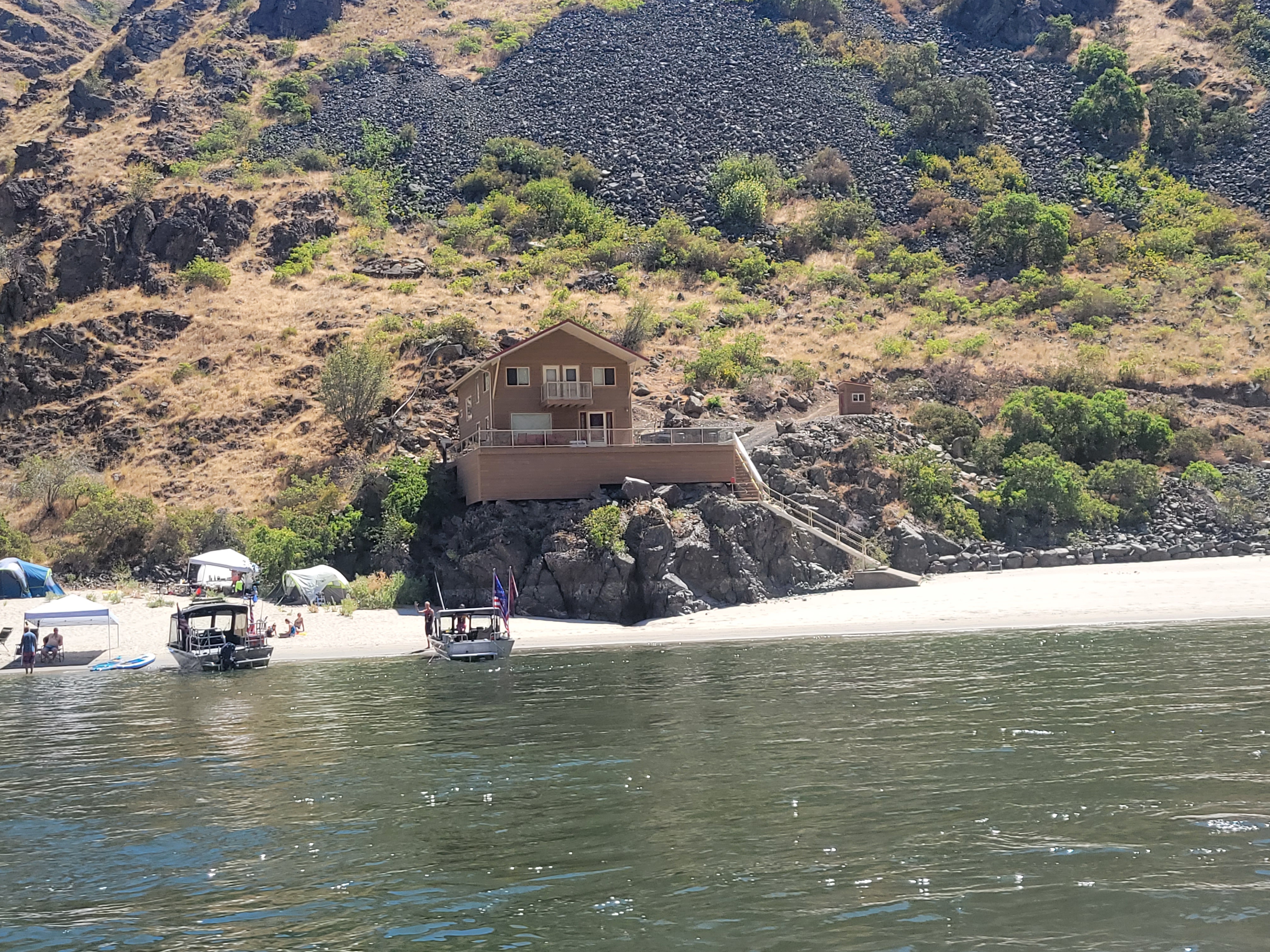 Around lunchtime we hit the US National Forest’s Cache Creek Ranch in Oregon, just past the border with Washington. Idaho was still on the opposite shore. Any boats travelling past this point are required to pull over to the dock and get their Hells Canyon permits checked. We stopped long enough to eat a delicious lunch that the tour company provided and had a lovely conversation with some fellow travelers from Northern California. Then we got into the boats and continued up-river until we reached Dug Bar, at which point we turned around. This area had a pretty heart-breaking indigenous people’s history: https://www.nps.gov/nepe/learn/historyculture/dug-bar-history.htm.