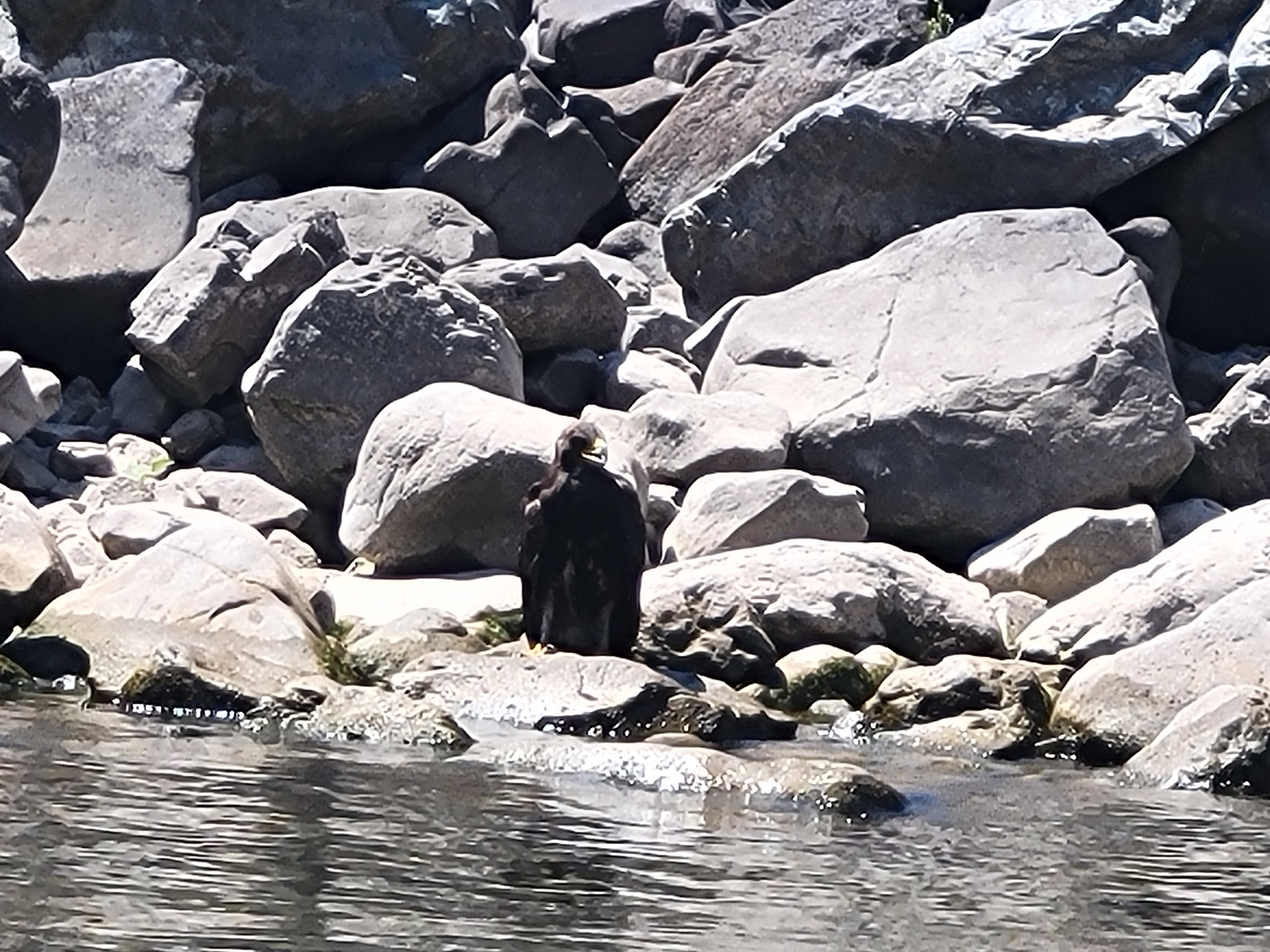 The company we chose for our adventure was called Snakedancer. I wish I remember our guide and his co-worker’s name because they were fantastic. We traveled up the Snake River, which started with denser homes along a wide green-brown river and low-slung cliffs that very quickly gave way to outcroppings of a handful of water-side homes only reachable by boat or – in rare instances – from dirt roads that disappeared over much higher cliffs. The latter houses were mostly off-grid with water tanks above them, generators kept in buildings that looked like outhouses, and with mail arriving via a boat once a week on Wednesdays.