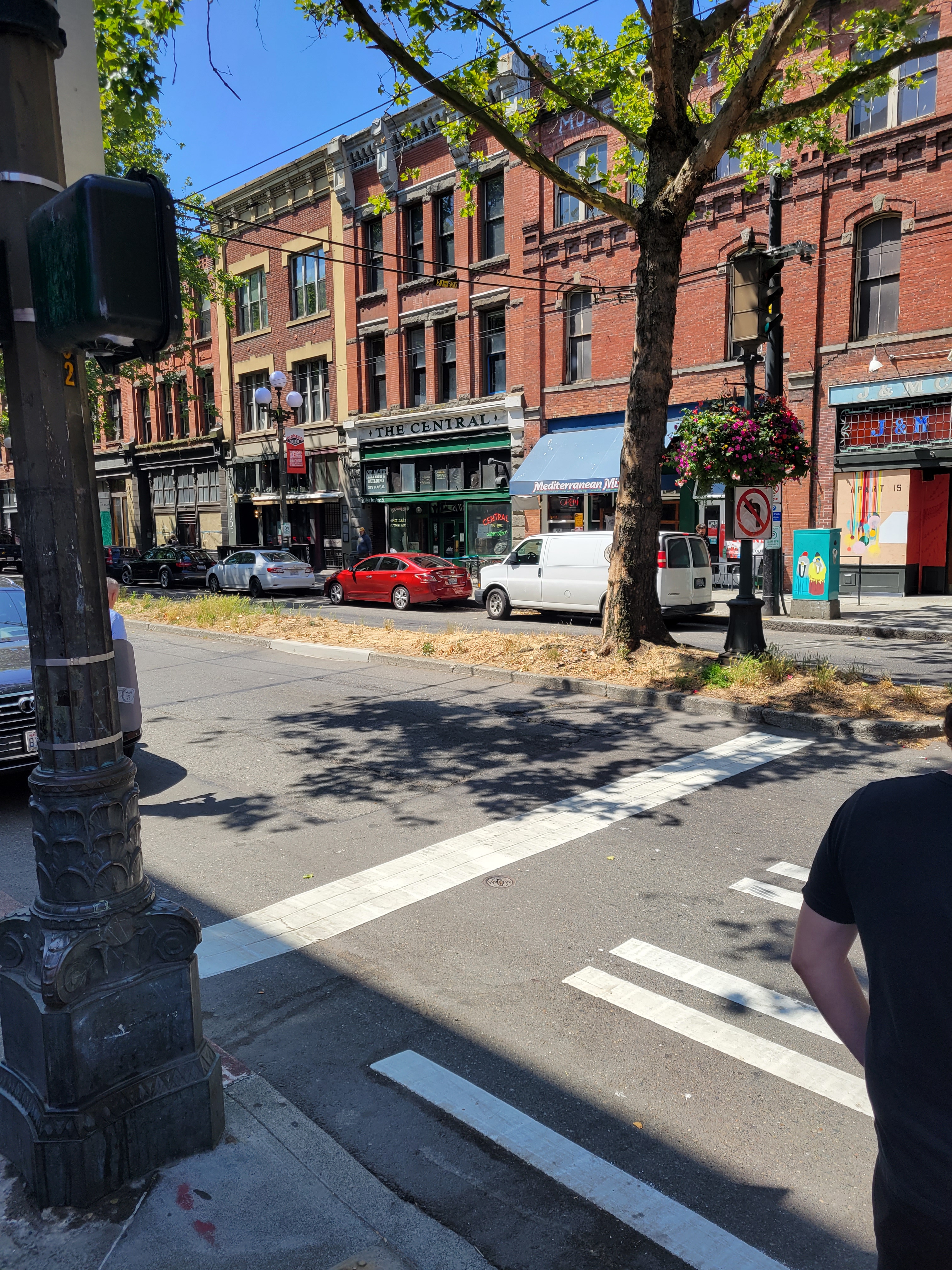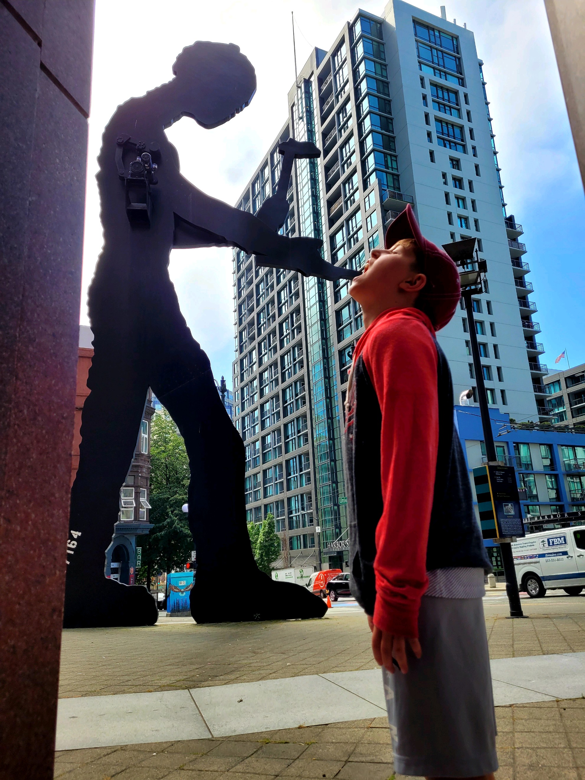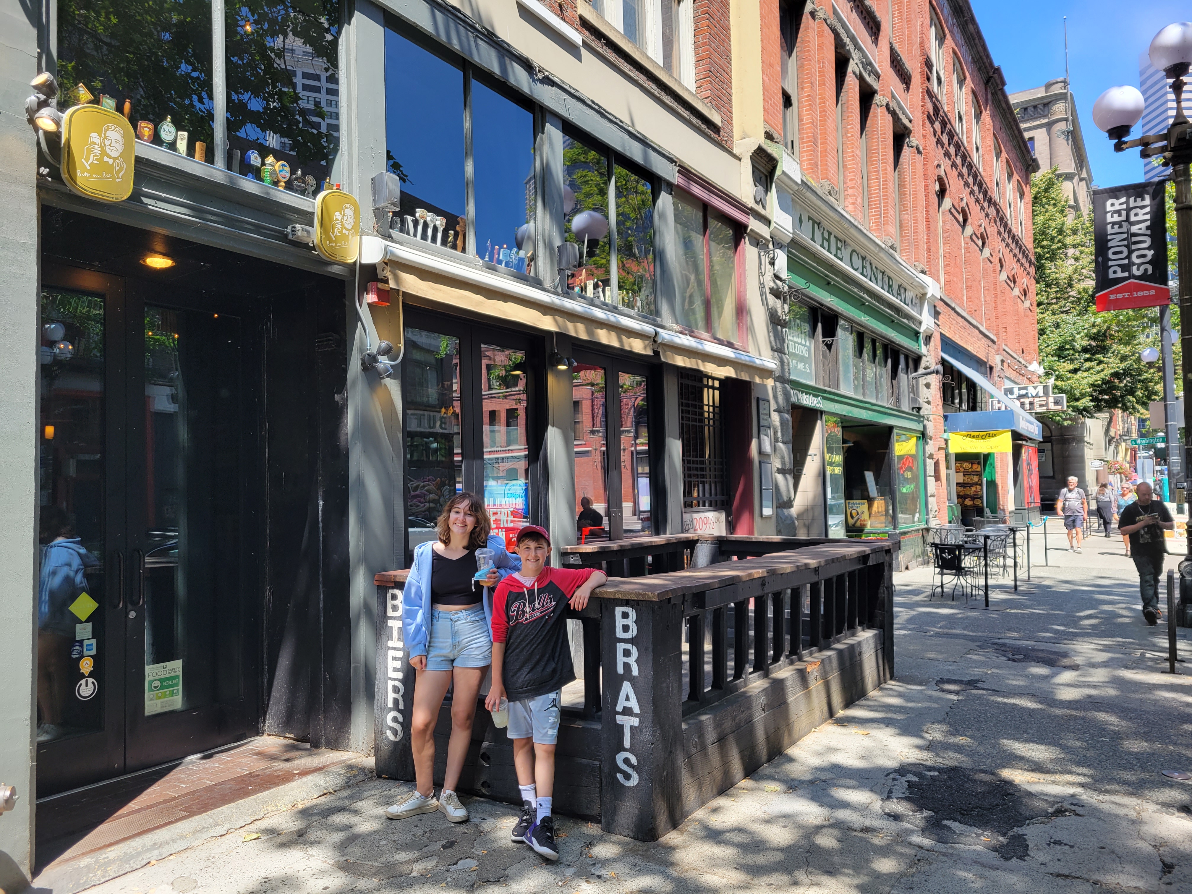 My cousin spent a great deal of time orchestrating an optical illusion picture from in front of the Art Museum, so kudos for doing that! Our last stop on the tour was to the Pioneer Square, which was a big locale for the 90s Seattle rock scene. Given that my cousin played in bands there, and also listened to many, he has many fond memories here.