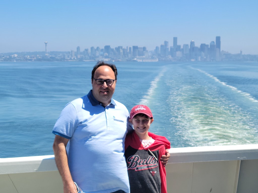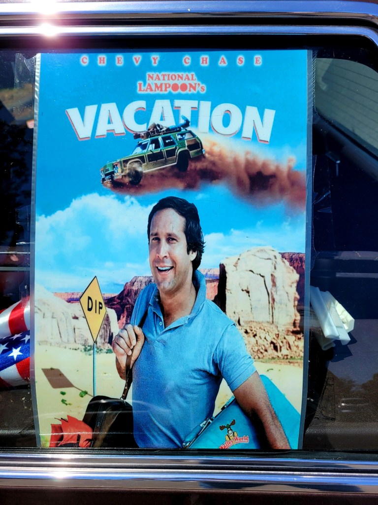 We had afternoon plans, so it was time to go all too soon. The sun was out by this point, so we got some great pics as we left the city (only got one photo where Raineer is kind of visible above the fire-haze). In the ferry parking lot, we noticed someone had hilariously decked out their car in National Lampoon Vacation style, so we had to snap pics. After all, we were on our own cross-country journey.