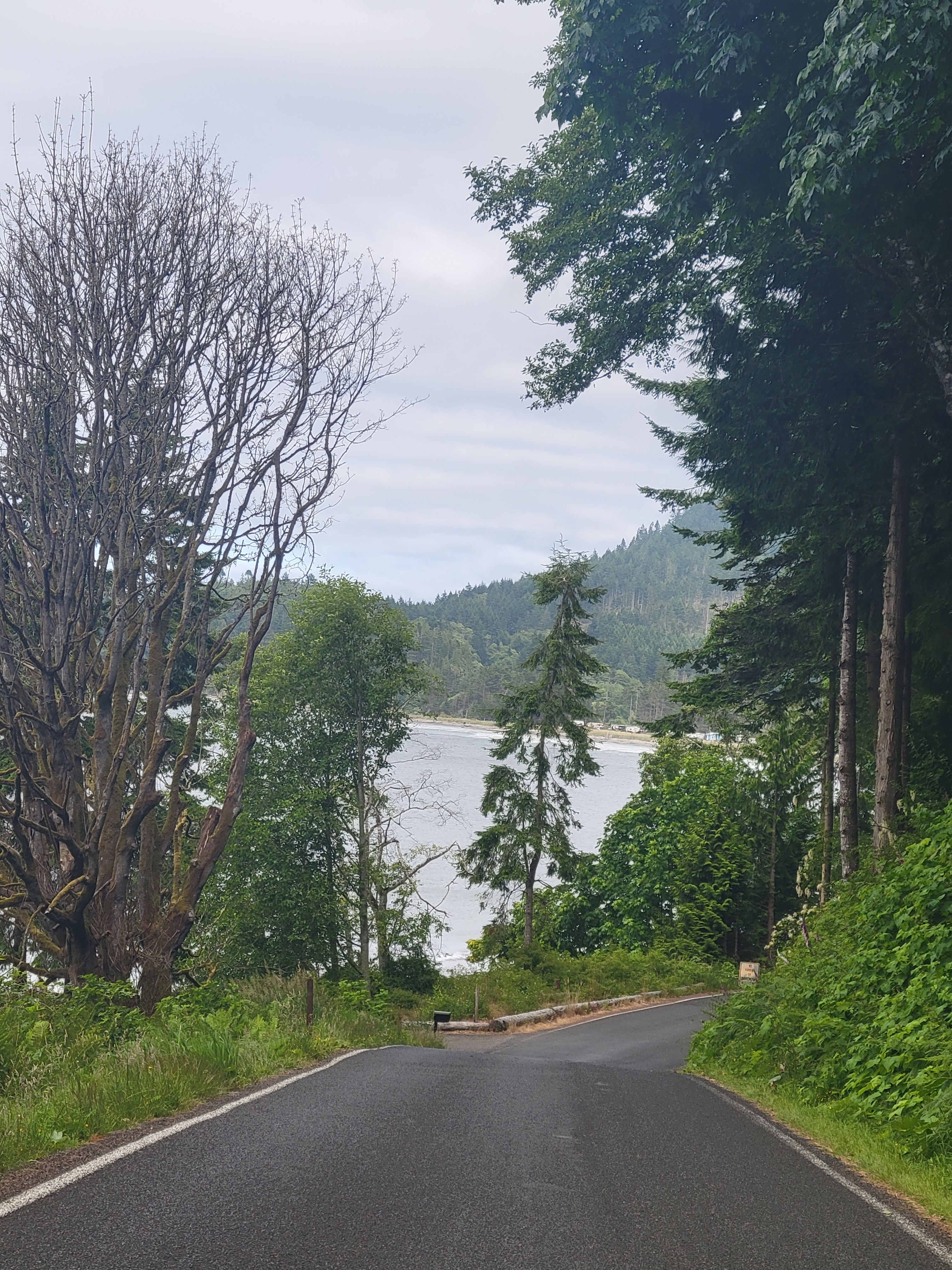 When business (of all types) was done, we set off on our drive. This was one of the prettiest drives we took, skirting Pacific Northwest rainforest for hours with the lovely Hood Canal at our left. By the way, Washington, thanks for the hilarious names, like Dismal Nitch and Cape Disappointment. In the evening, the Pacific Ocean was at our right, stretching away to the misty horizon from our breathtaking cliffside route. Astoria was the first major town in Oregon to greet us. I only had time to snap pictures from the car as we were running a bit late to get to our campsite, so I’m sorry for the quality. If you’re fans of the movie “The Goonies” you’ll recognize this town, since a lot of the shots in the movie were filmed there.