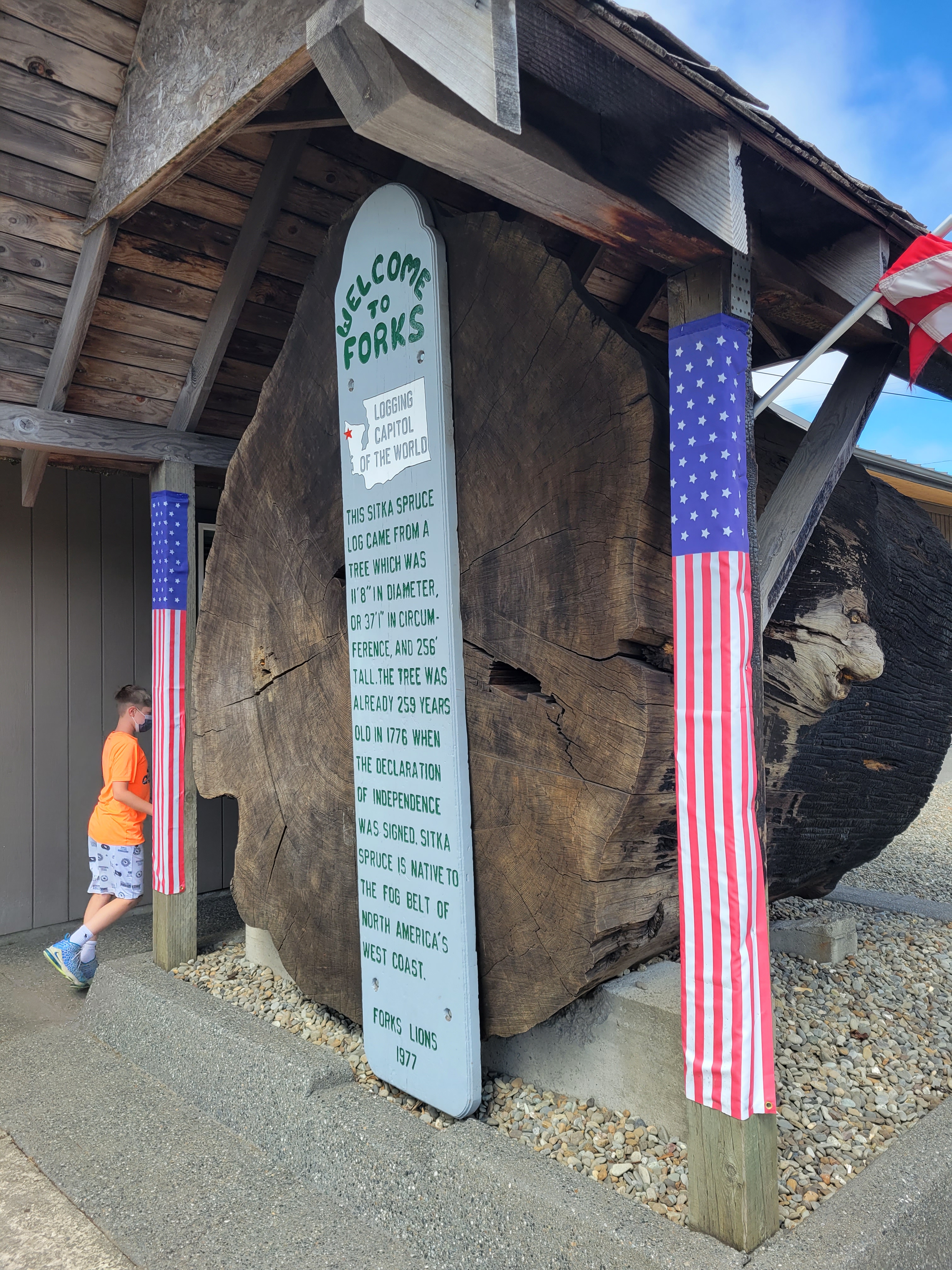 More than one shop in Forks featured movie and book merch, plus there is also a museum dedicated to Twilight (which had a line out the door). Interestingly, the movie wasn’t even filmed in Forks. While movie/book tourists are a new economy, the mainstay of the area is – apparenty, according to the sign below – logging.