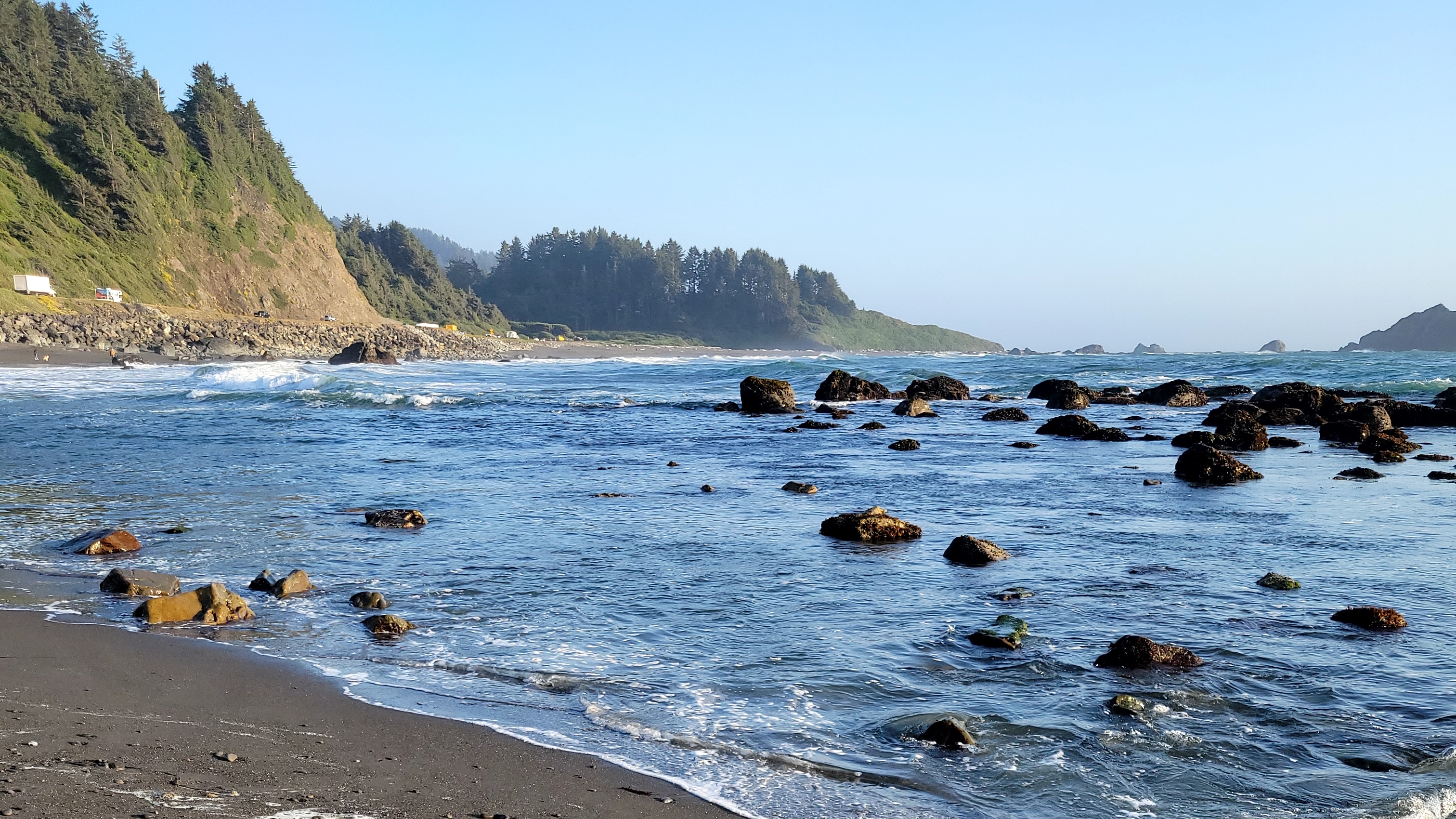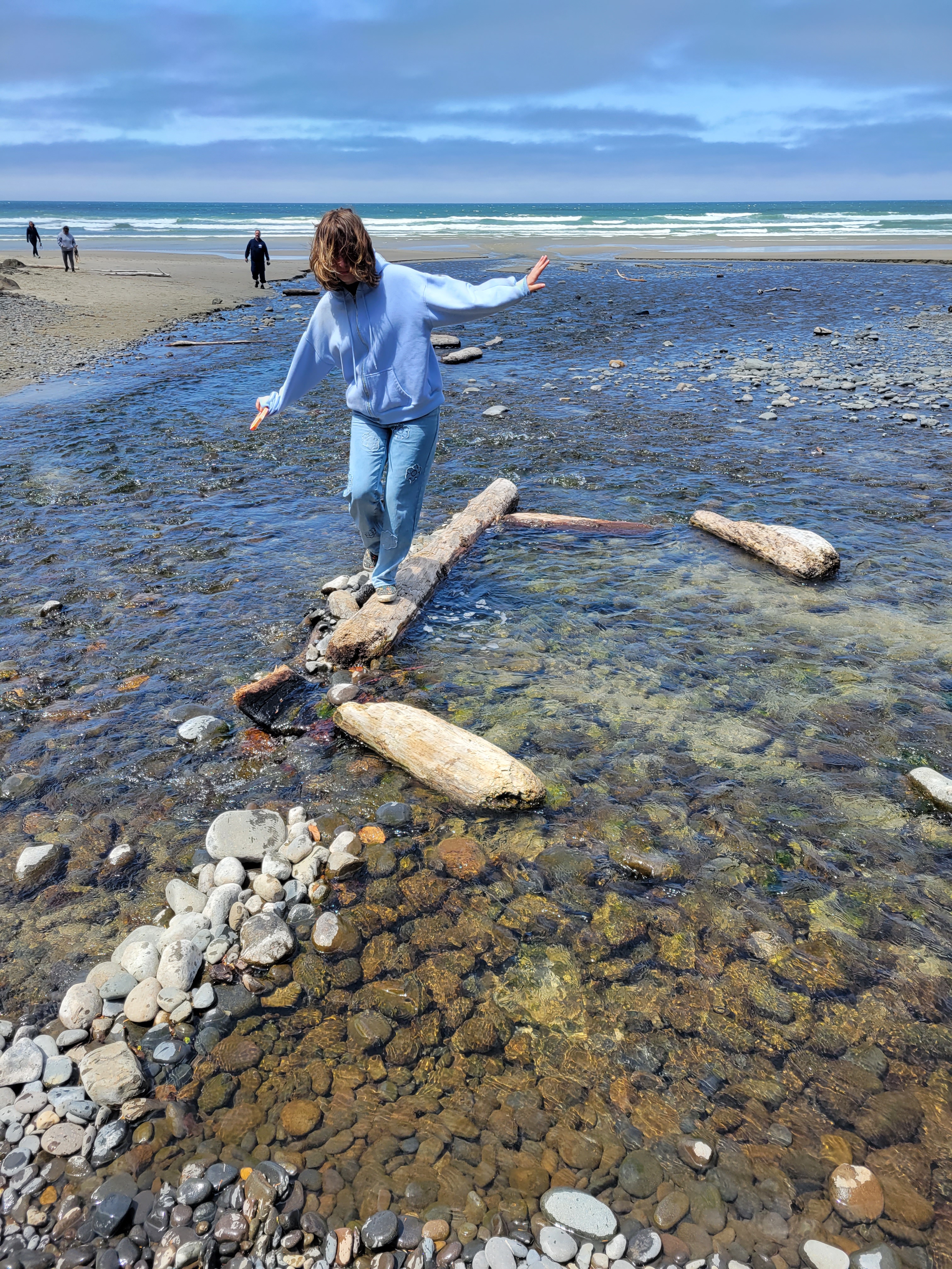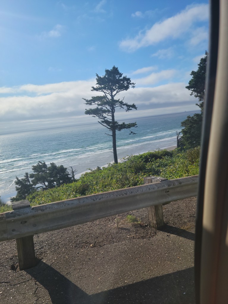 The morning we left for the Oregon coast, Chris had some meetings scheduled mid-morning. So, about an hour from Port Angeles, we found a parking lot with five bars of cell service for him and did some shopping and ate lunch. Matthew had wanted some baskets to store things in his bunk and we found them in a Ross store. Plus, everyone needed to use restrooms that wouldn’t require a sewer dump site visit.
