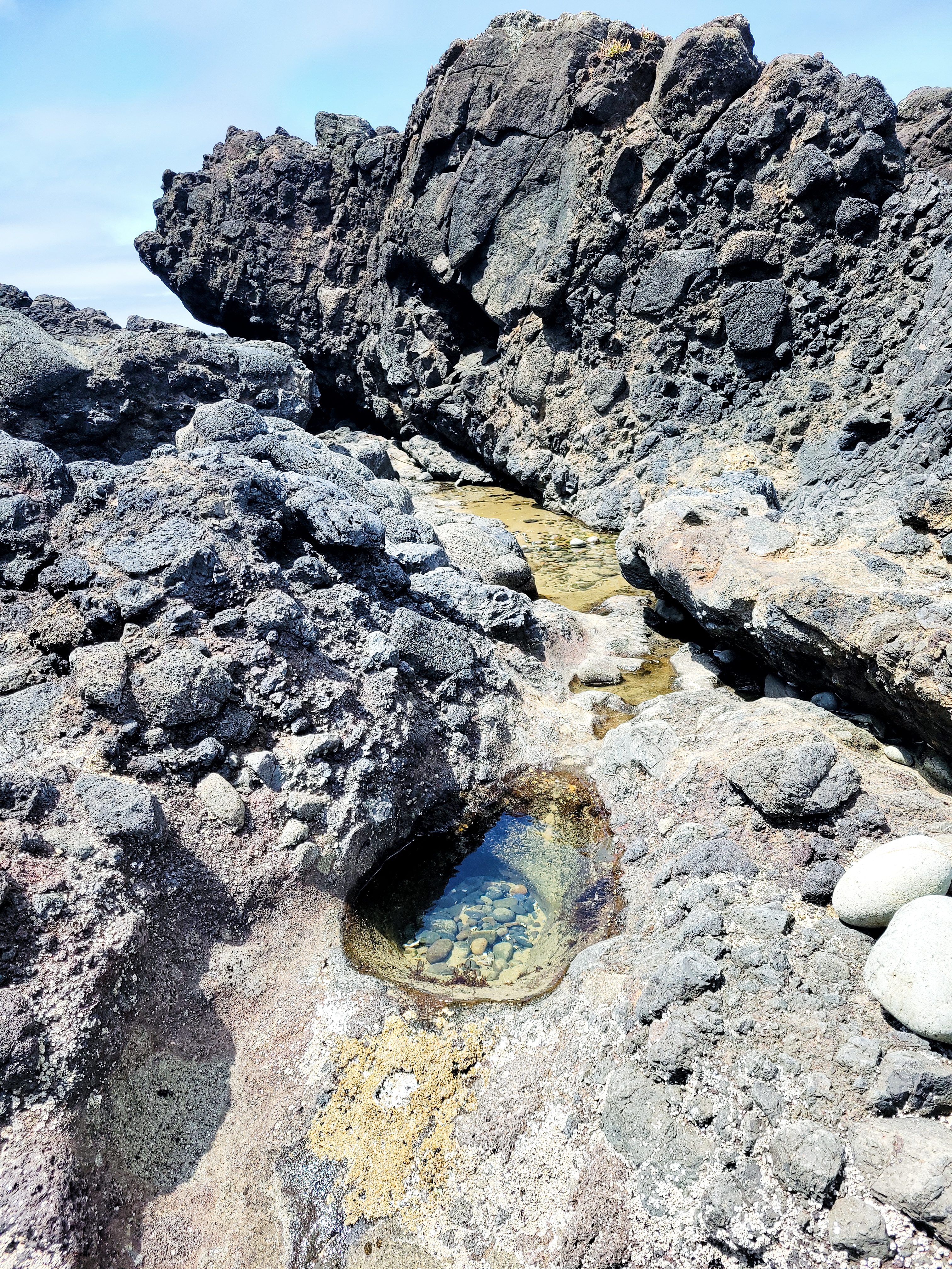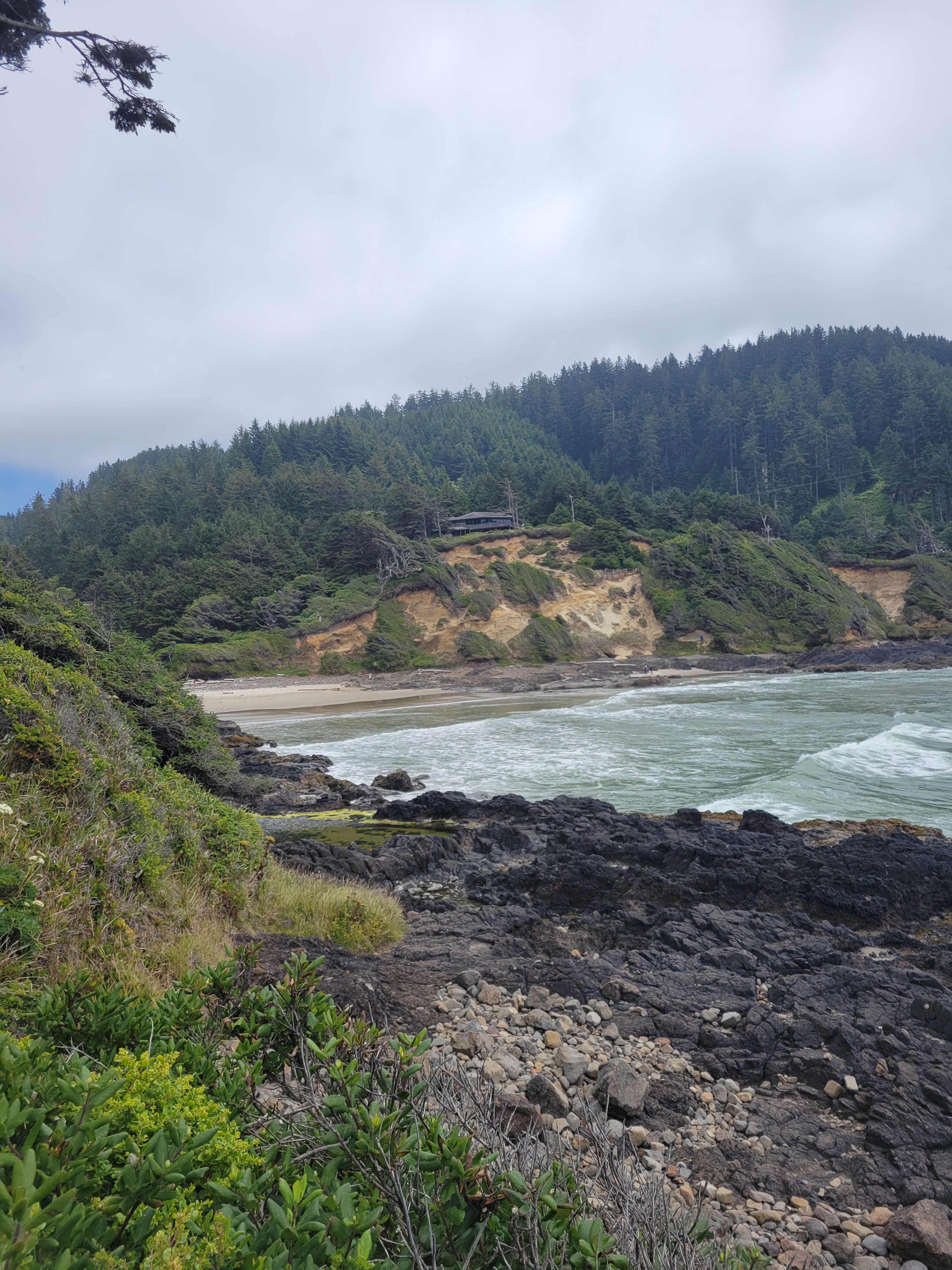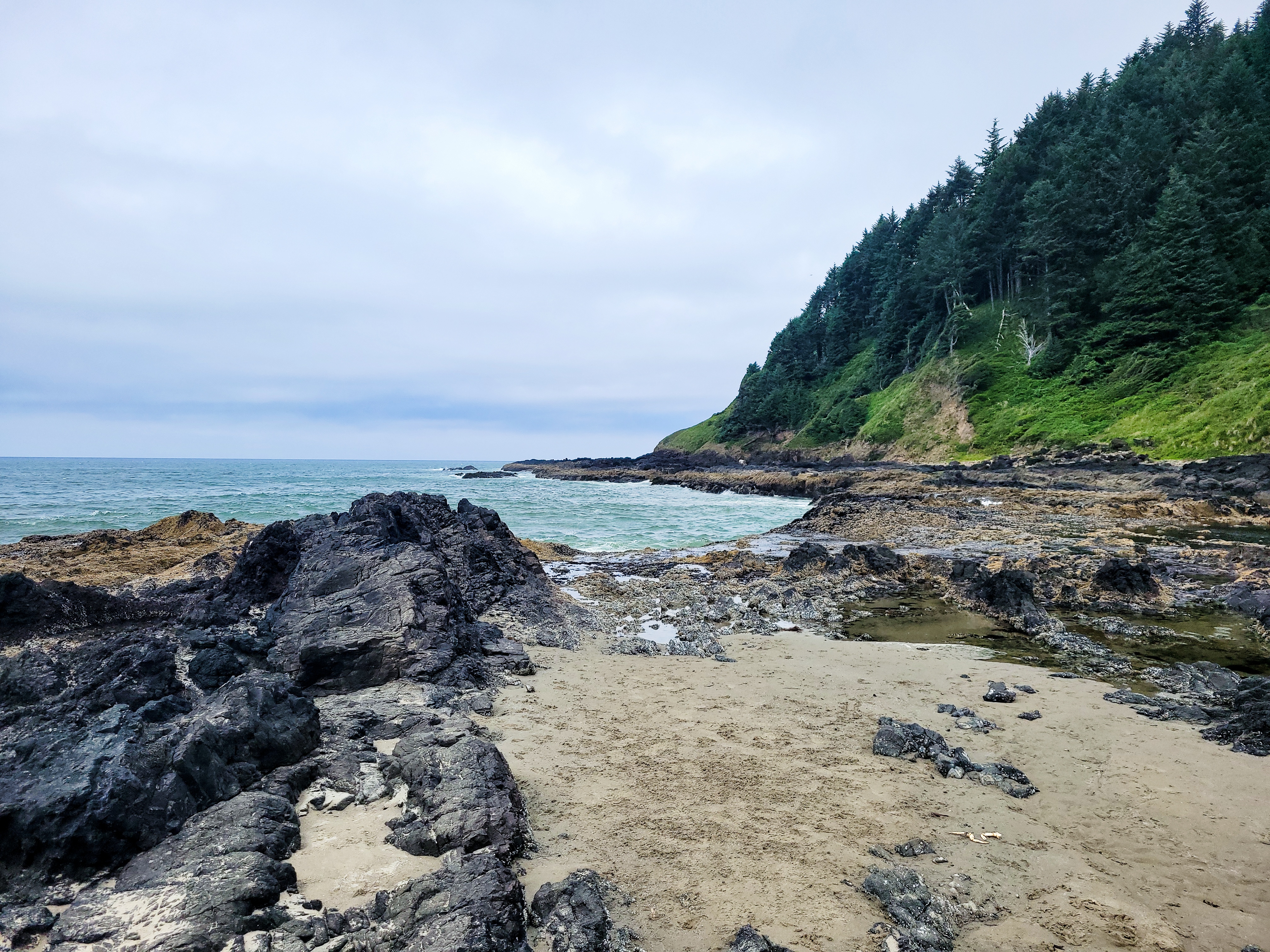 Then we started to pick our way down the coastline south of our homebase of Waldport. We started by purchasing an Oregon Coast parking pass that covers national and state-run parking lots for the entire time we’d be there. Then we hiked down Devil’s Churn and the kids got their first feel of the Pacific ever. Yep. They’ve never touched the Pacific Ocean.