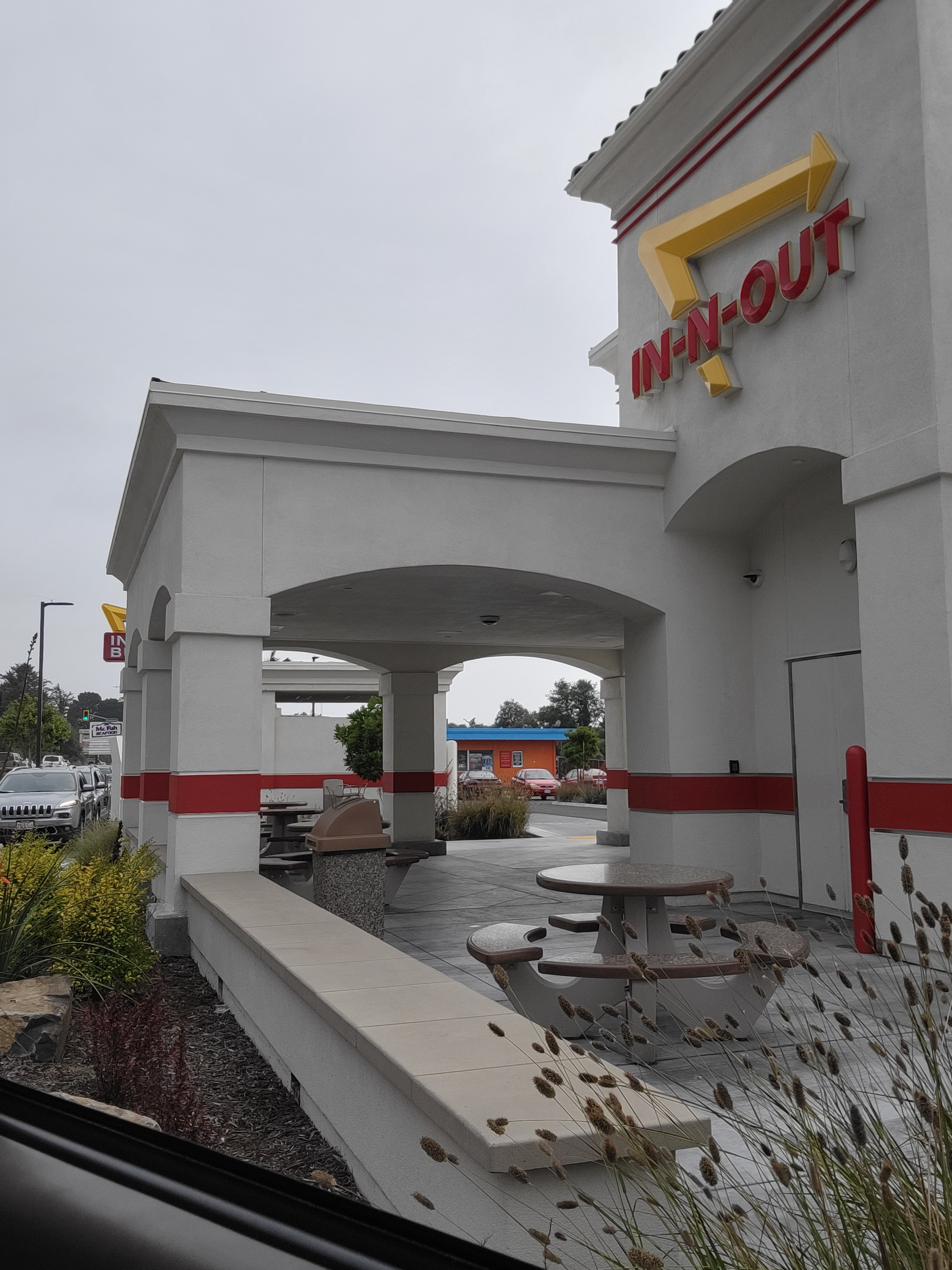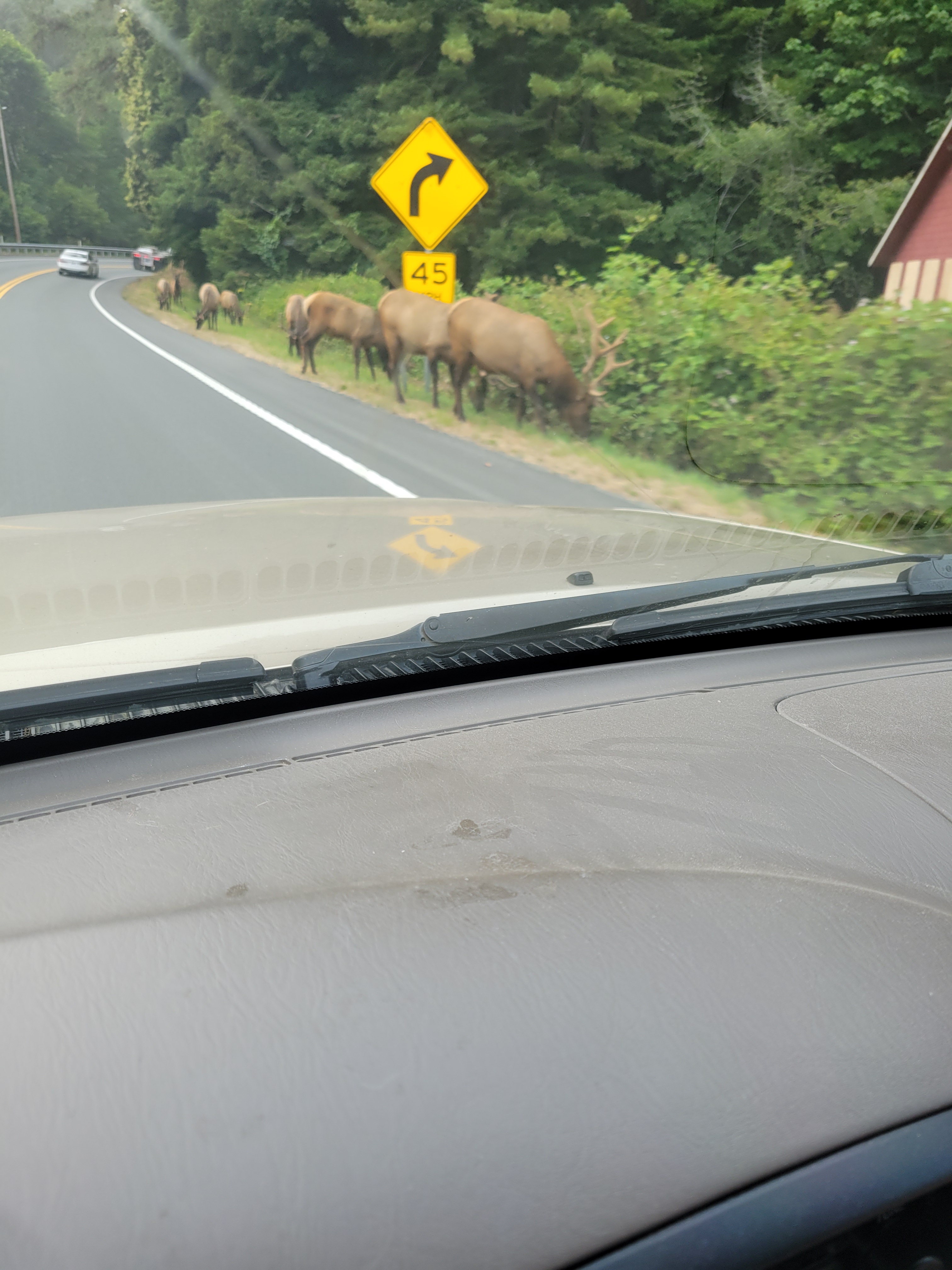 We stayed until nearly four and then headed home, only to find out that we couldn’t pass through Route 101 until 7. It was entirely shut down for hours. Matthew declared that he had to get an In N Out burger before we left California, so we decided to head south to get some in Eureka. It was over an hour away, but what else did we have to do? So, we hit the road and traveled through some beautiful valleys full of streams and grazing elk, along with periodic small towns.
