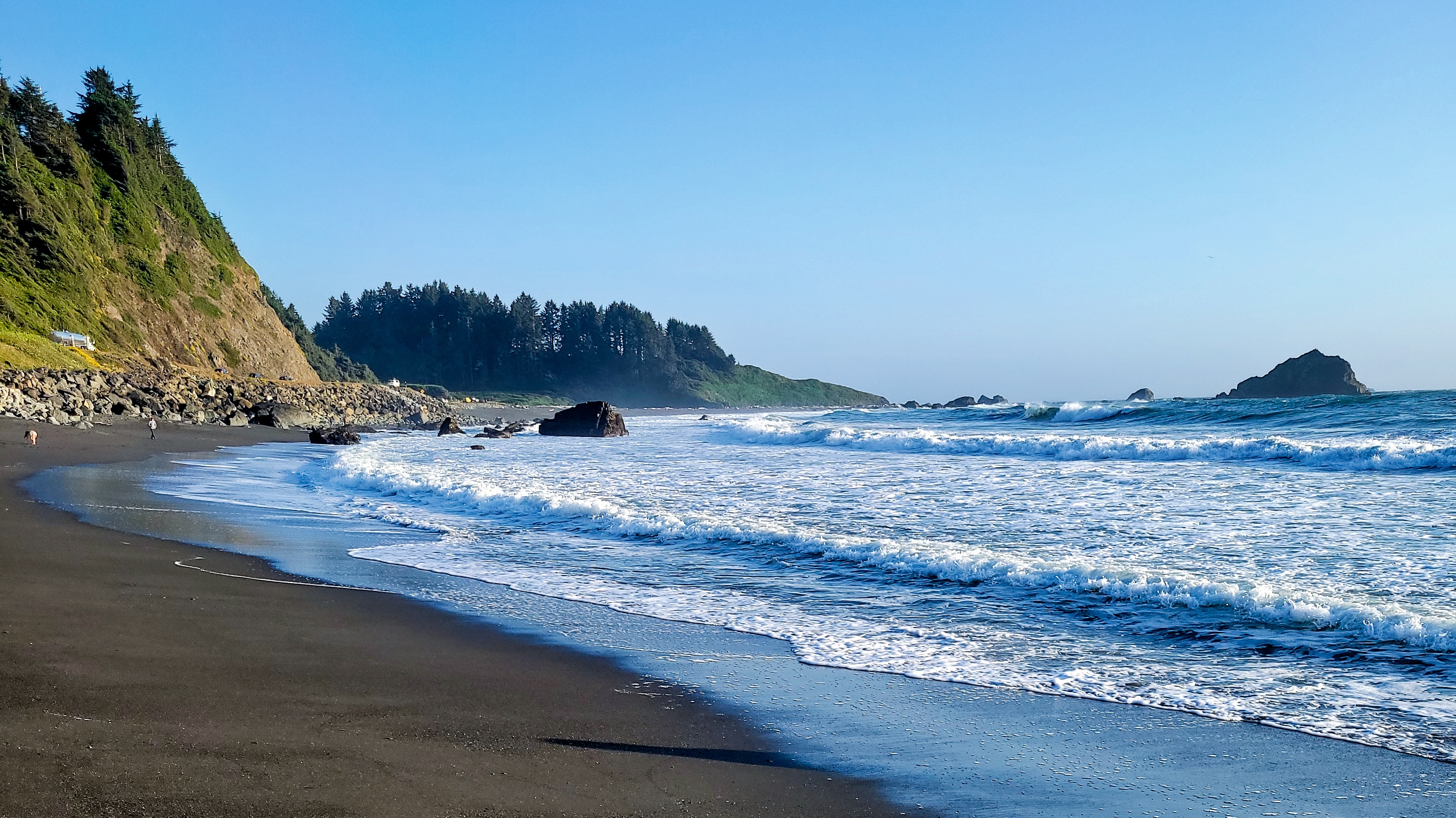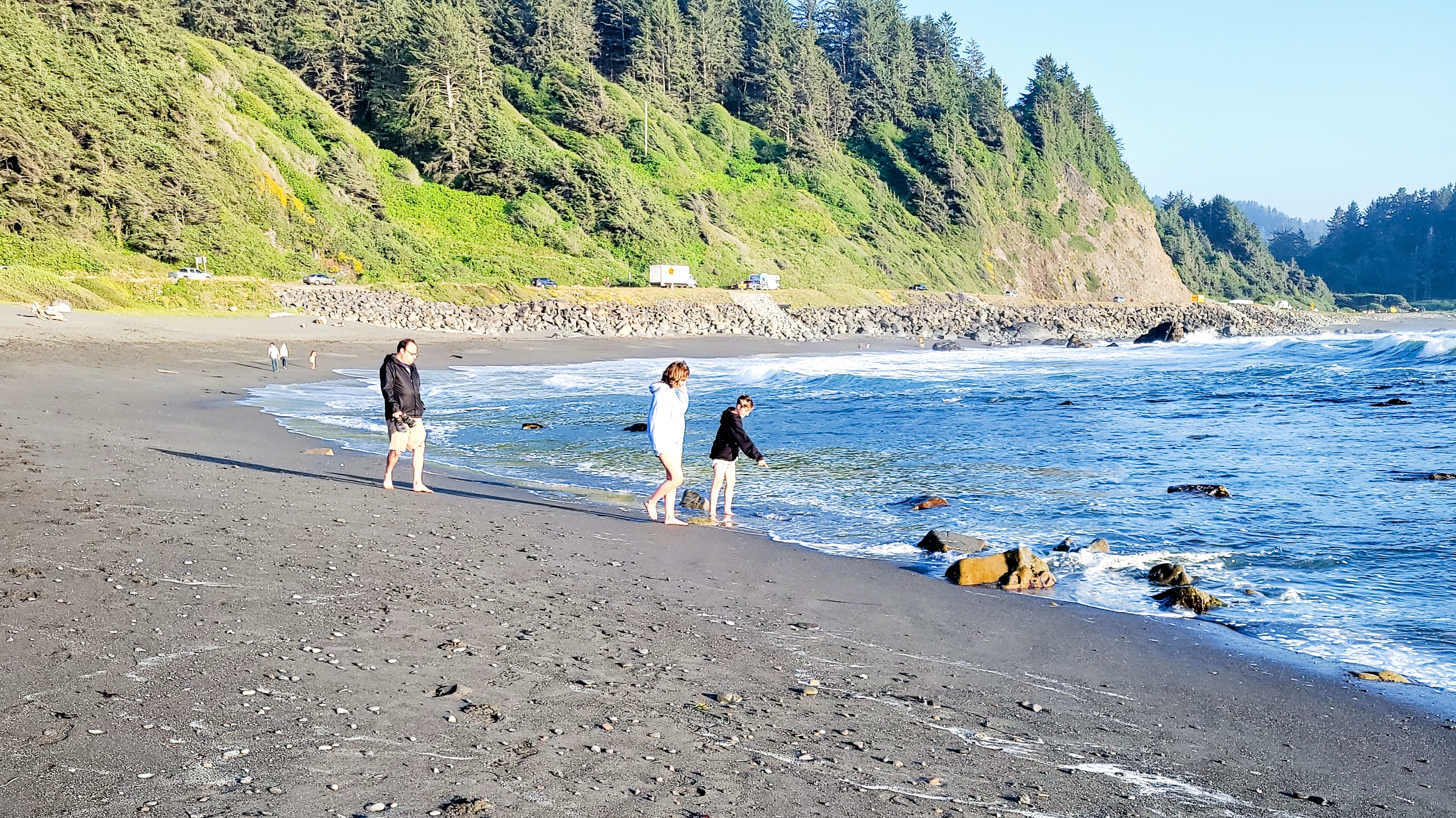 On the way back, we took our last visit to a Pacific Coast beach. This one was full of black, volcanic sand and was absolutely stunning. As was the case with every beach we stopped at over the last few days, there were very few other tourists to contend with, and the temperatures were cool and windy. When we all had our fill, we went home and had a quiet night amid the Redwoods.