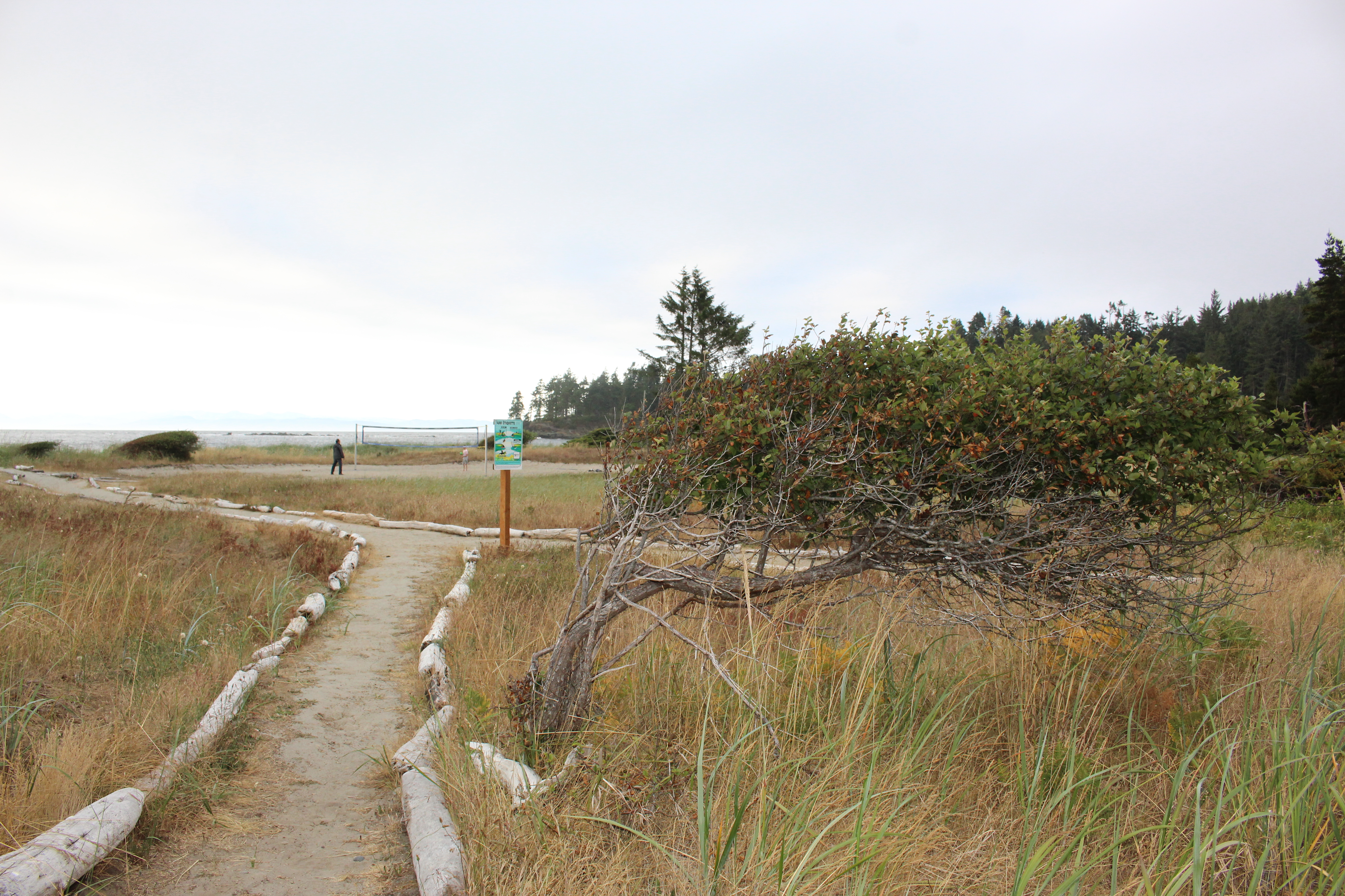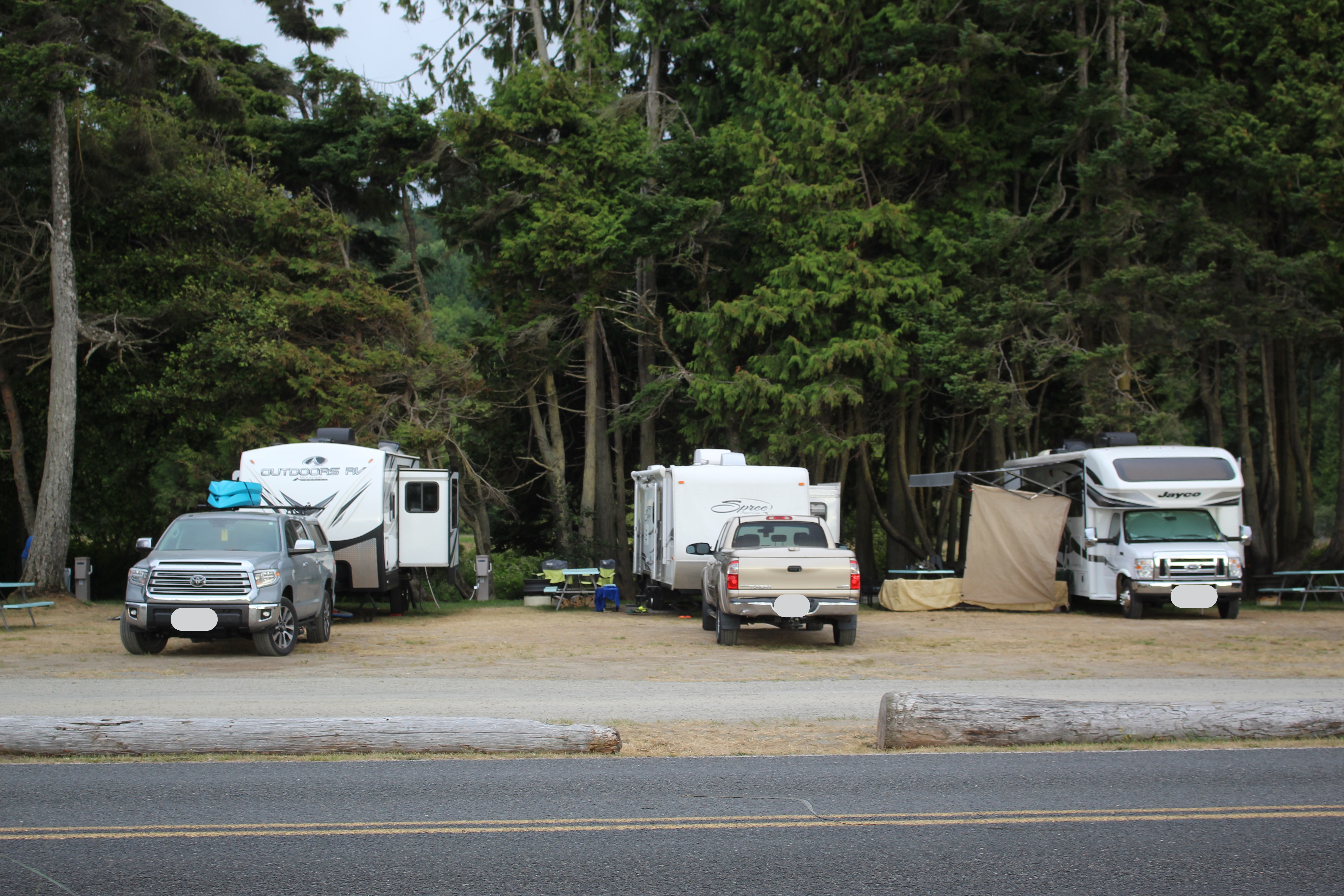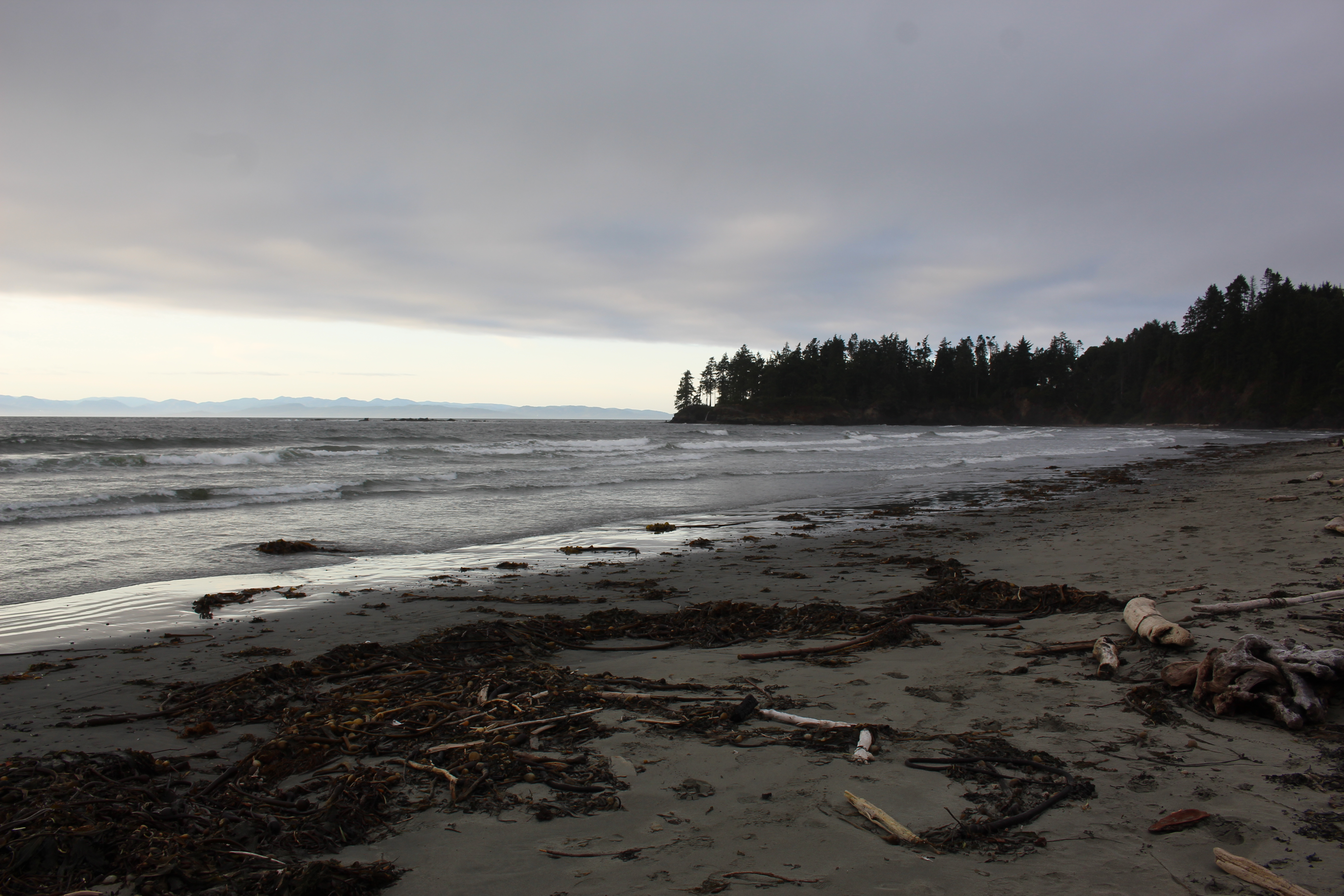 Being only a couple hours from our campsite at Crescent Beach, we arrived there as early as was possible to check in. The place was breathtaking. Stretching across the vista in front of our camper was an extensive private beachfront on the Strait of Juan de Fuca. We could very clearly see Vancouver Island, and – in fact – we were so close that we picked up Canadian cell service. Behind the site were the Olympic Mountains, which were visible from the beach when the cloud cover lifted.