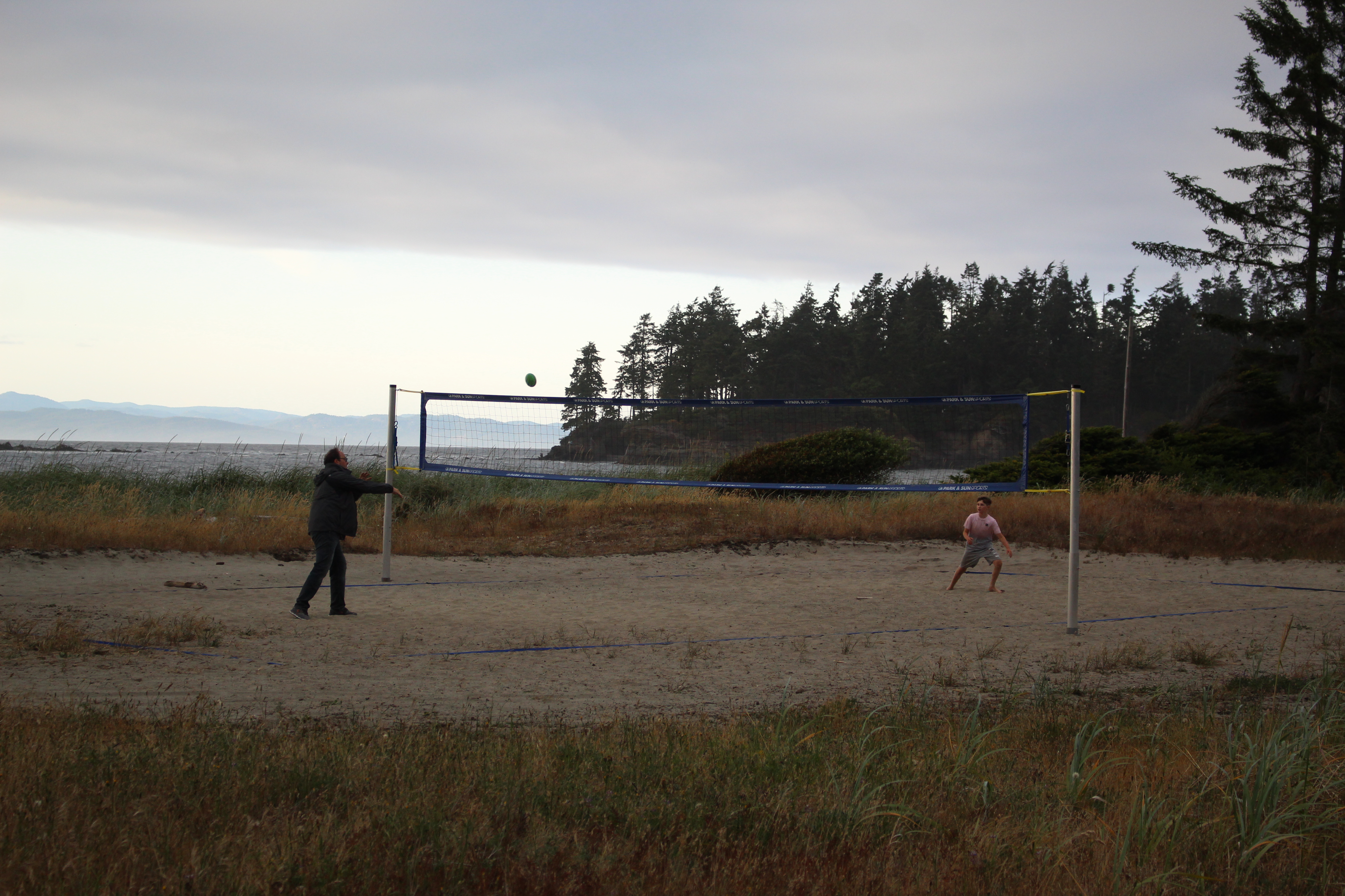 After dropping off the groceries, I took the truck up to Port Angeles to be looked at. It turns out there was just a lot of air conditioning condensation dripping, but the mechanic found the sway bar was broken and fixed it. Plus we got an oil change. The view from the town wasn’t too shabby either. All in all, it was a great afternoon. Unfortunately, when I got back I discovered Izzy had gotten my form of the cold and was feeling miserable. While I made a soup dinner for her and the familiy, the boys played beach volleyball on the campground’s court. I took a walk on the beach as the food cookded. That evening, we sat around the campfire to get warm. (Did I mention it was considerably colder here than anywhere we’d been so far?)