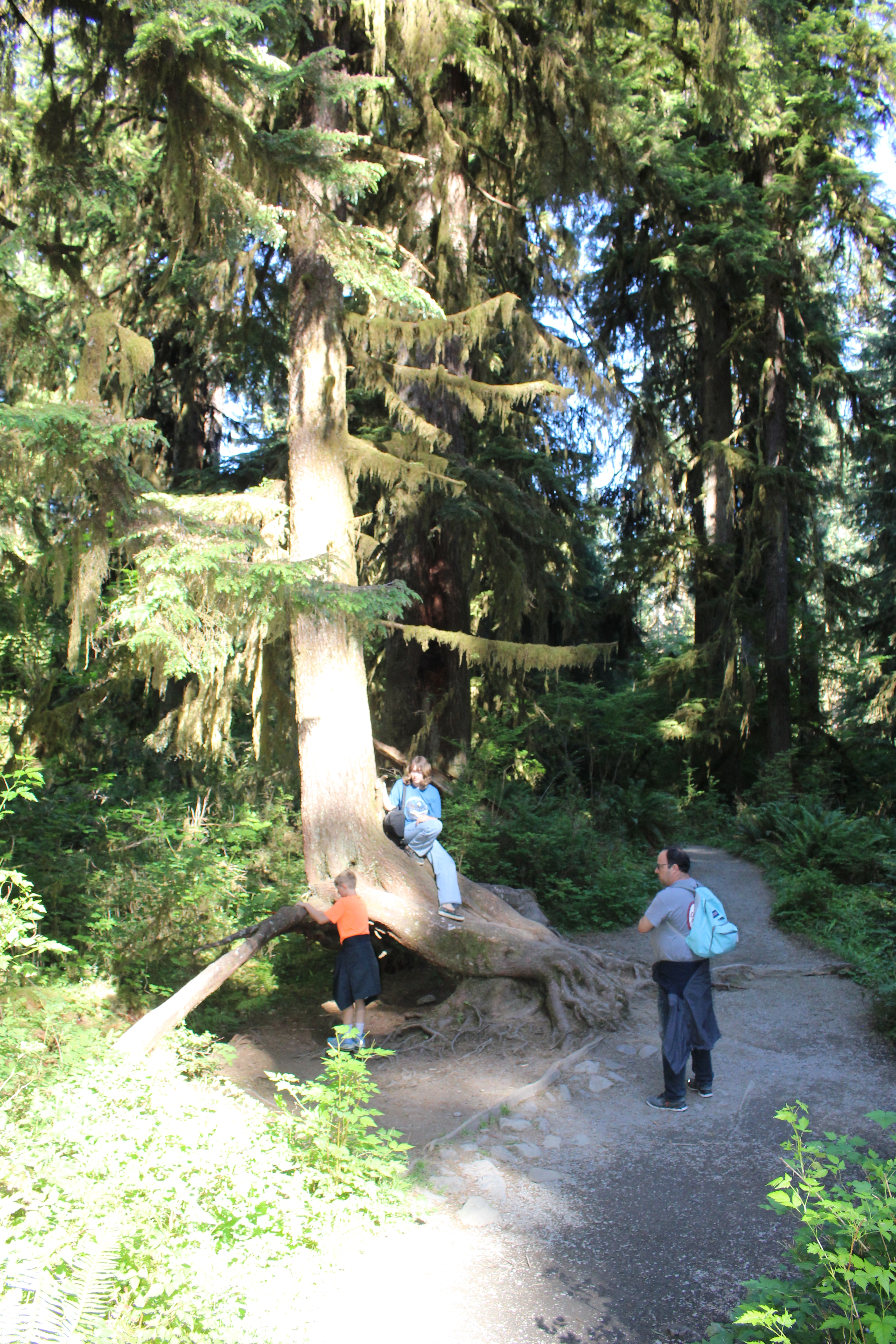 The next day, we forewent driving up the mountains of Olympic National Park. Izzy was stuffed up and I didn’t want her ears to hurt with the altitude change. Besides, we’d been to mountains already and would see more later in the trip. So, we headed in the direction of the Olympic National Forest’s lower trails into the rainforest. In order to get to these trails we had to go through Forks – where Bella meets Edward in the infamous Twilight series of books. We stopped, ate some really yummy Italian food, and let Chris do some work in the car outside of the library in Forks. Verizon cell phone reception was not great in the area, so he needed the steady WiFi. Izzy sat in the car and rested, while Matthew and I went into some shops and then the hardware store. I had to get a dish drying rack that fit a small trailer, extra large ziploc bags to hold the sewer line when we stow it since the first one fell apart, and 3M hooks to help keep towels off the floor. By this point, I was growing a bit obsessed with using Command hooks to solve trailer life mess-related issues.