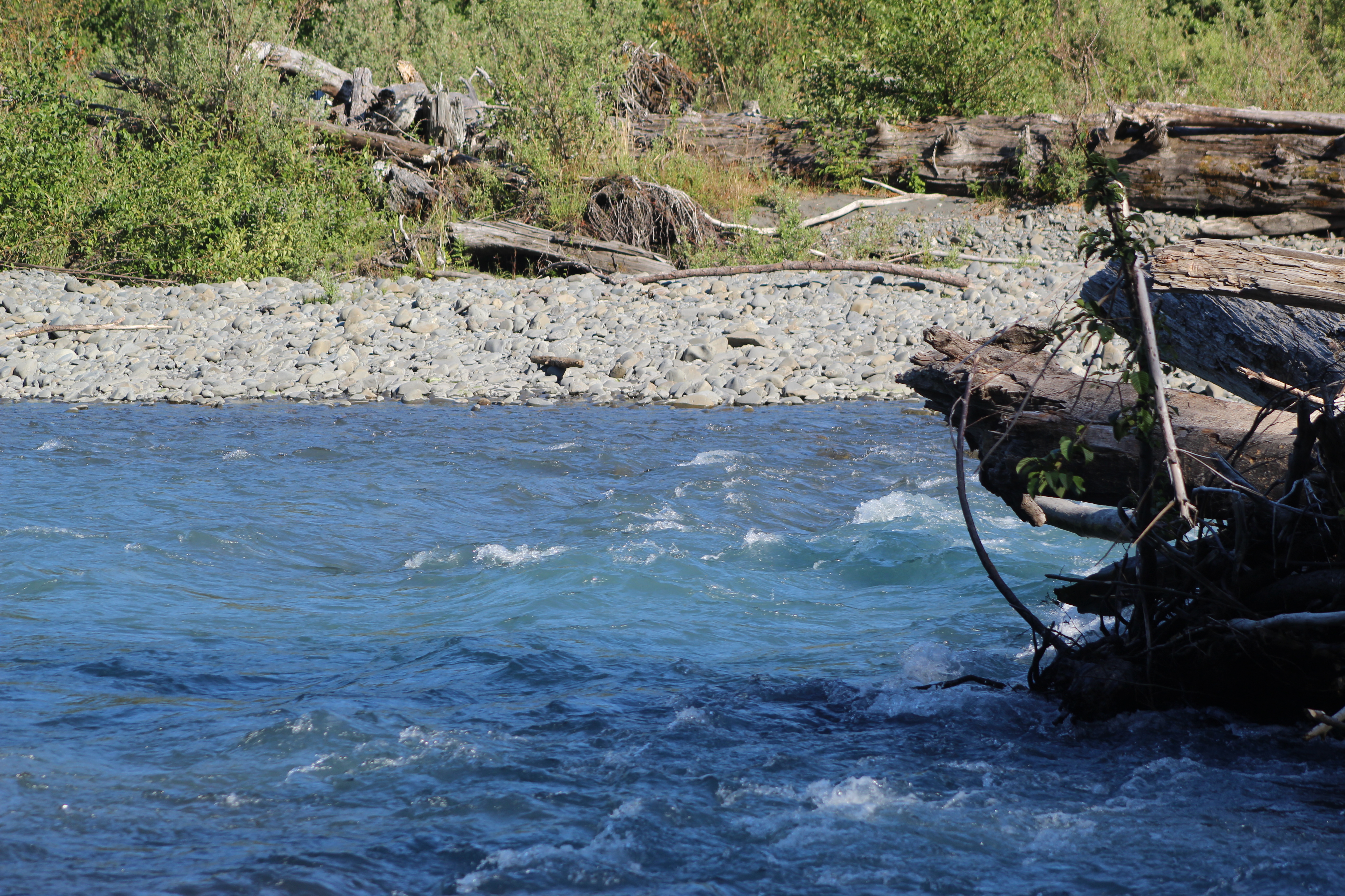 There were plenty of wild animals to see along the river, like bald eagles, mountain rams and elk. We also saw an abandoned mining operation. At the confluence with the Salmon River, the source of the brown in the water was revealed. It was pouring out of the Salmon, also known as the River of No Return, because any supply boats that traveled this river could never make the return trip on the rapids without suffering too much damage. Our guide said that somewhere up the Salmon there might have been a mudslide. Past this point, the Snake River was a pretty deep green-blue color.