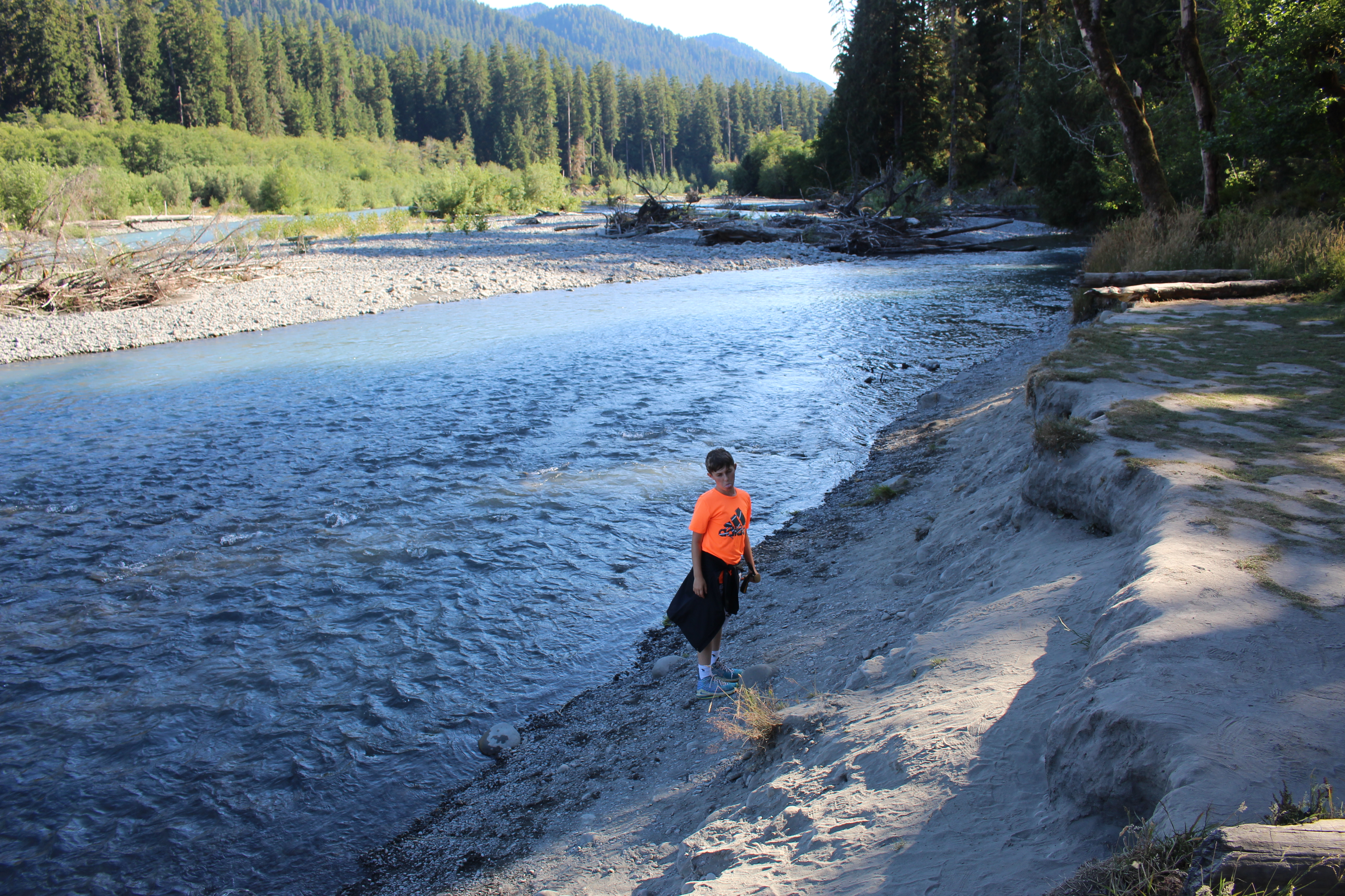 Finding a camping site for the Fourth of July was extremely difficult. I was thrilled that one opened at a park that was en route to our next campsite in Kitsap. This one was located at a beautiful park along the Green River called Kanaskat-Palmer State Park. It was even better because it was close to a couple of my cousins who live East of Seattle.
