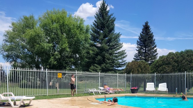 The second day – our only full day in Vernal – the kids took advantage of the pool and relaxed, while I focused on laundry. Chris used the WiFi to do work. In the late afternoon, we drove up the road from our campsite to visit Red Fleet State Park. It’s a shame because we got there so close to the park’s closing time that we didn’t see the dinosaur footprints, but the scenery was still breathtaking. I would highly recommend carving out time to visit this park if you’re in the area. Of course, Dinosaur is a fun park to visit as well, however, we had been there during our last cross country trip with the kids so they wanted to bypass it this time.